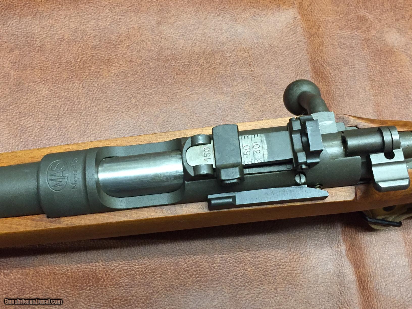 Description: Pair of French MAS Model 45 Training Rifles CONSECUTIVELY NUMBERED. CAL: 22 LR. Please Note: Consecutive serial numbers - F 27916 and F 27917. LIKE NEW condition. 150 meter rear sight, parkerized finish. Light hardwood stock with factory sling. (N.A. CO Ridgefield NJ import marks.)Weight: 10 pounds. **THIS IS A PAIR!!!!** **Shipping: UPS Ground ONLY. If you have any questions please feel free to contact us at duncansgunworksyahoo or 760-727-0515. Closed Sundays and Mondays. **NO PERSONAL CHECKS** **We cannot ship to PO boxes.** "Like" us on Facebook, facebook/duncansgunworks SOLD Caliber Info: 22 lr Condition: like new |