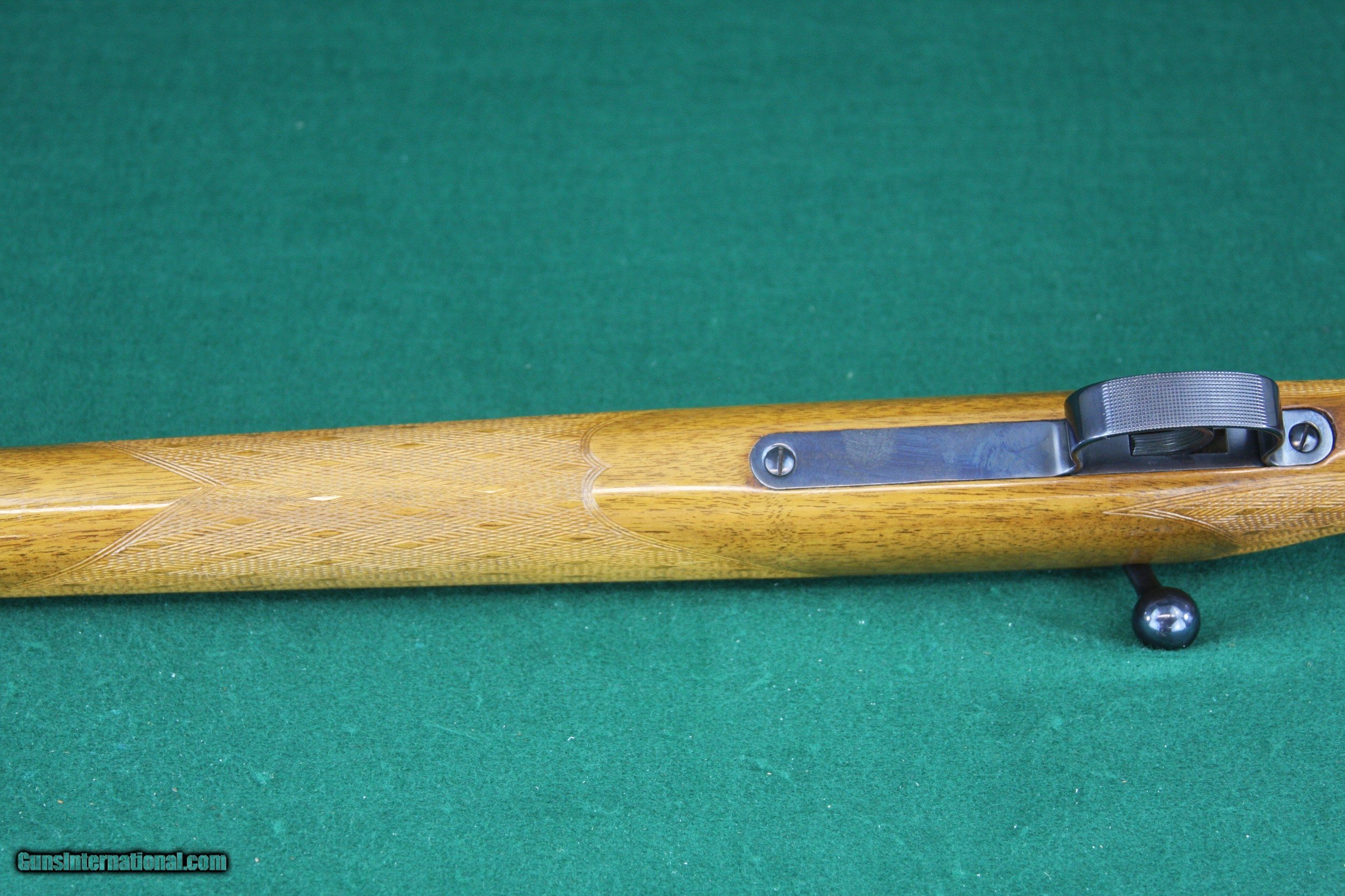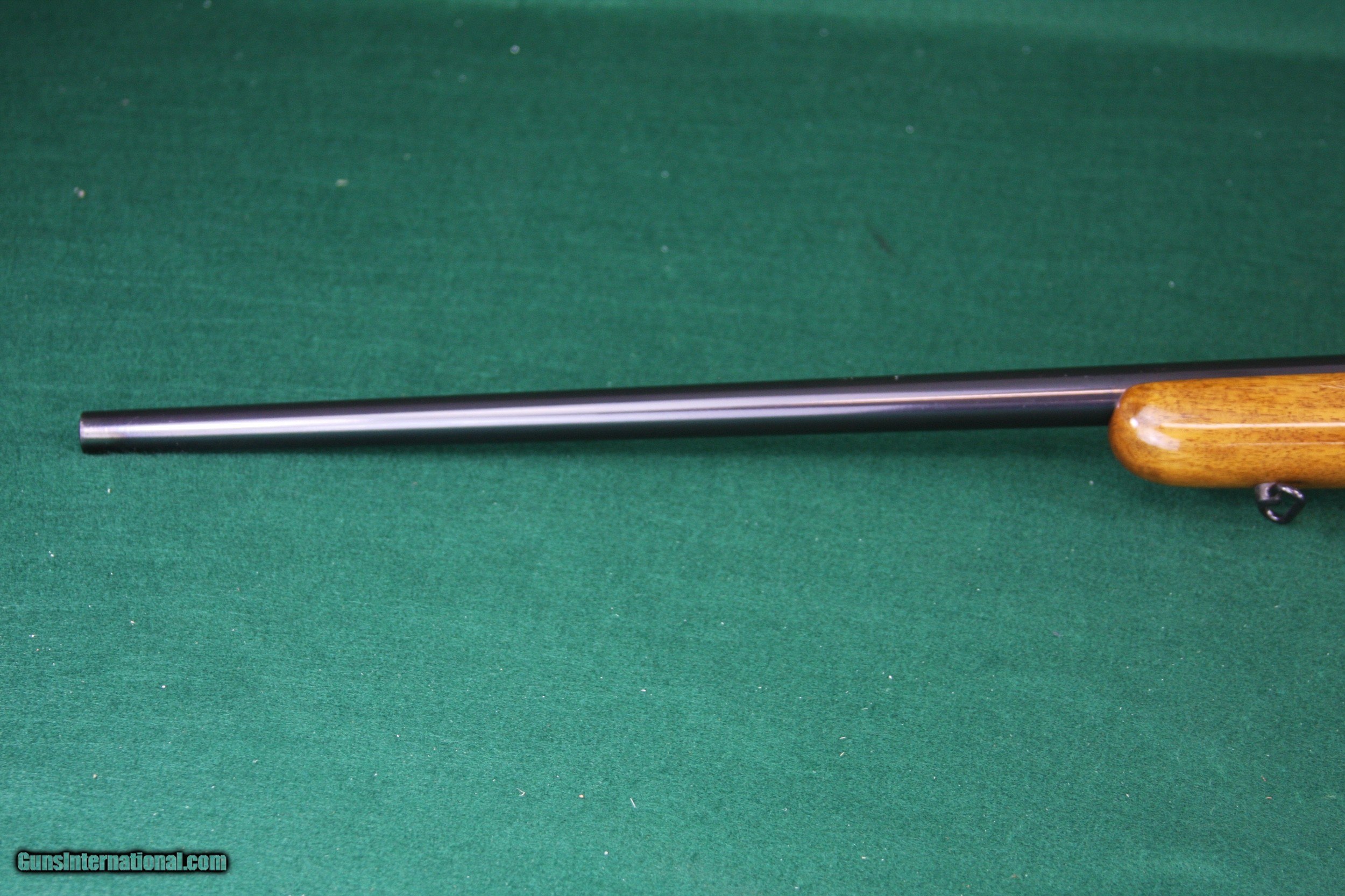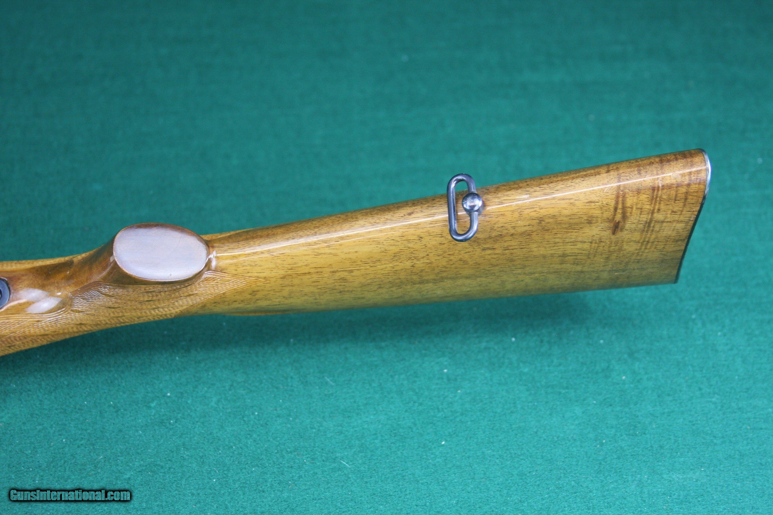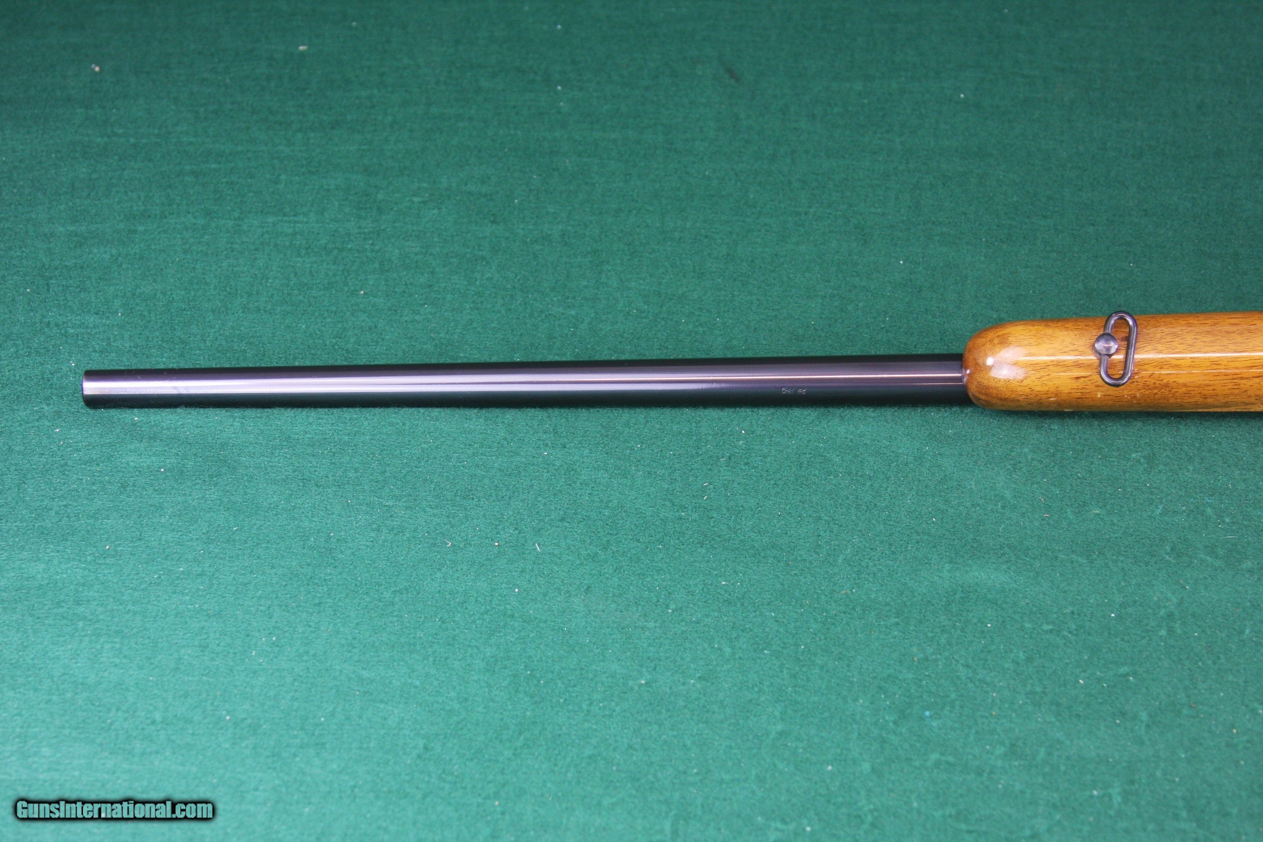 Description: ***PENDING SALE****This ES 340 B CUSTOM rifle was produced in Germany prior to WWII as a fine quality German training rifle. It features unique custom stock, nicely figured wood with wrap around skip line checkering on the fore end. The 26-1/2" Barrel receiver and trigger guard have been re-blued to a deep, rich finish. This rifle retains a factory butt plate with Mauser Banner. Sights have been removed, leaving dove tailed receiver for mounting a scope or red dot sight. The bolt handle has been modified to clear a scope and the safety has been disabled, also presumably to accommodate a scope. Two minor blemishes are shown in the pictures…one at the back of the receiver and one near the front of the fore end. This is truly an extraordinary rifle…Great for squirrels, a young shooter, or maybe an old guy that just likes quality. It’s rare to see these rifles customized, especially with this quality. See the pictures for condition. Happy to talk, text or email any time. Let me know if you have any questions. Thanks for looking! 1739621 KIE 7E If your preference is Walnut & Blue, check out my other listings for quality Traditional and Custom Firearms. SOLD Curio/Relic: Yes Rifle Caliber: .22 Long Rifle Manufacturer: MAUSER-Werke A. G. Oberndorf Model: ES340B Serial Number: 177467 Barrel Length: 26-1/2 Bore: Excellent Condition: EXCELLENT Metal Condition: EXCELLENT Wood Condition: EXCELLENT Bore Condition: EXCELLENT Action: Bolt Action Triggers: SERRATED Stock: FINELY CHECKERED WALNUT Butt Pad: Factory Steel with Mauser Banner LOP: 13-3/4 Finish: Glossy Wood/Deep Blue Weight: 7 lbs 5 oz Sights: NONE Manufacture Date: MID 1930'S |