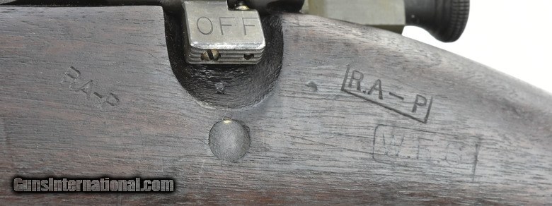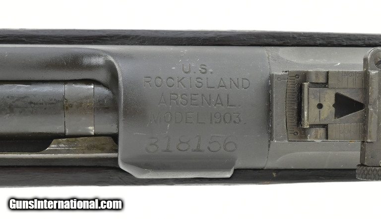 Description: Rock Island 1903 .30-06 caliber rifle. WWI era U.S. military rifle. Arsenal refurbished post-war. Barrel is dated 1918. Bore has strong rifling with pitting. Stock has a few arsenal cartouches. Very good overall condition.