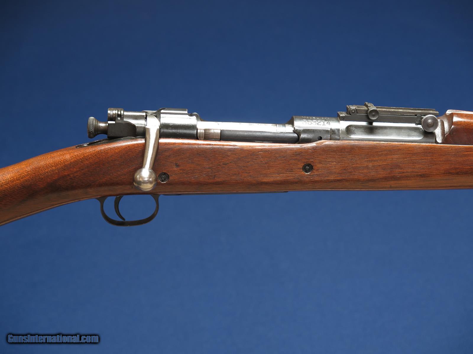 Description: Rock Island Arsenal 1903 30-06. SN 353,XXX. Springfield star gauge barrel, dated 2-38. Letters RAP stamped on stock. 95-96%. Excellent bore. SOLD |
