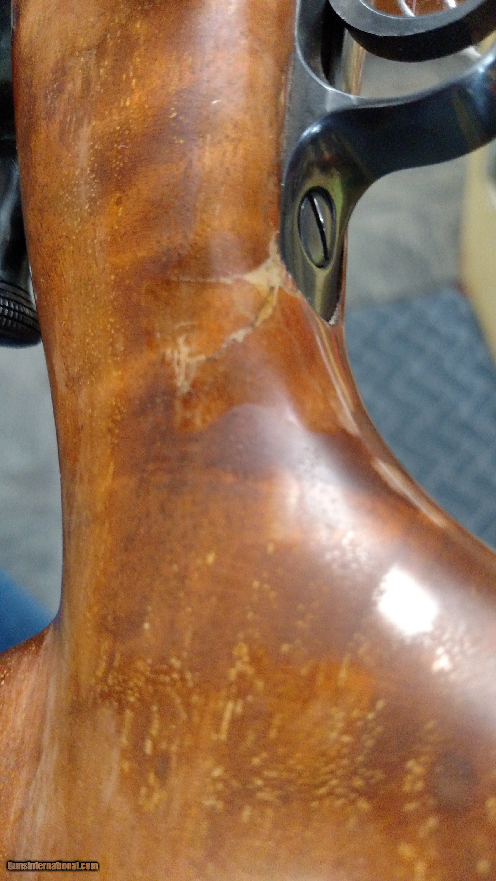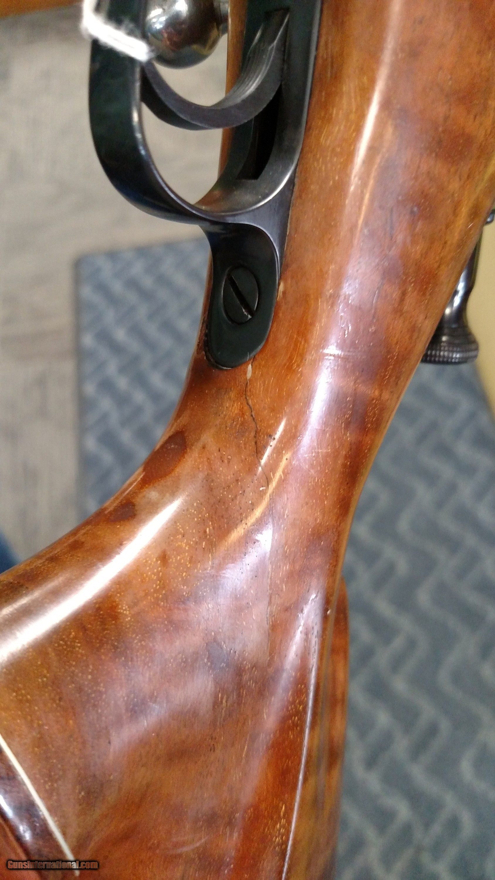 Description: As pretty as they come!! Made by a craftsman.......no garage mechanic stuff here. Nicely figured wood, monte carlo comb, raised cheek and rosewood gripcap and forend. Barrel is 24". Trigger is an aftermarket single stage set at 4lb. I am guessing it is an older Timney. The follower has been ground so you need not push it down to close the bolt. It does have old repairs at the wrist that appear to have been made at the time the rifle was stock. Probably strong now than in the beginning. They do not detract from it's looks. It wears of the era Bausch & Lomb mounts. Please call or email with any questions. WE TAKE CREDIT CARDS, DEBIT CARDS, MONEY ORDERS, CASHIER CHECKS, OR EVEN PERSONAL CHECKS.........AS LONG AS THEY'RE GOOD! 3% will be added to all charge cards. GUNS WILL BE HELD UNTIL PERSONAL CHECKS CLEAR. GUNS SUBJECT TO PRIOR SALE. There is a $30 shipping charge per gun and is NOT refundable. Insurance may be extra. Thank you, Darryl Howard SOLD |