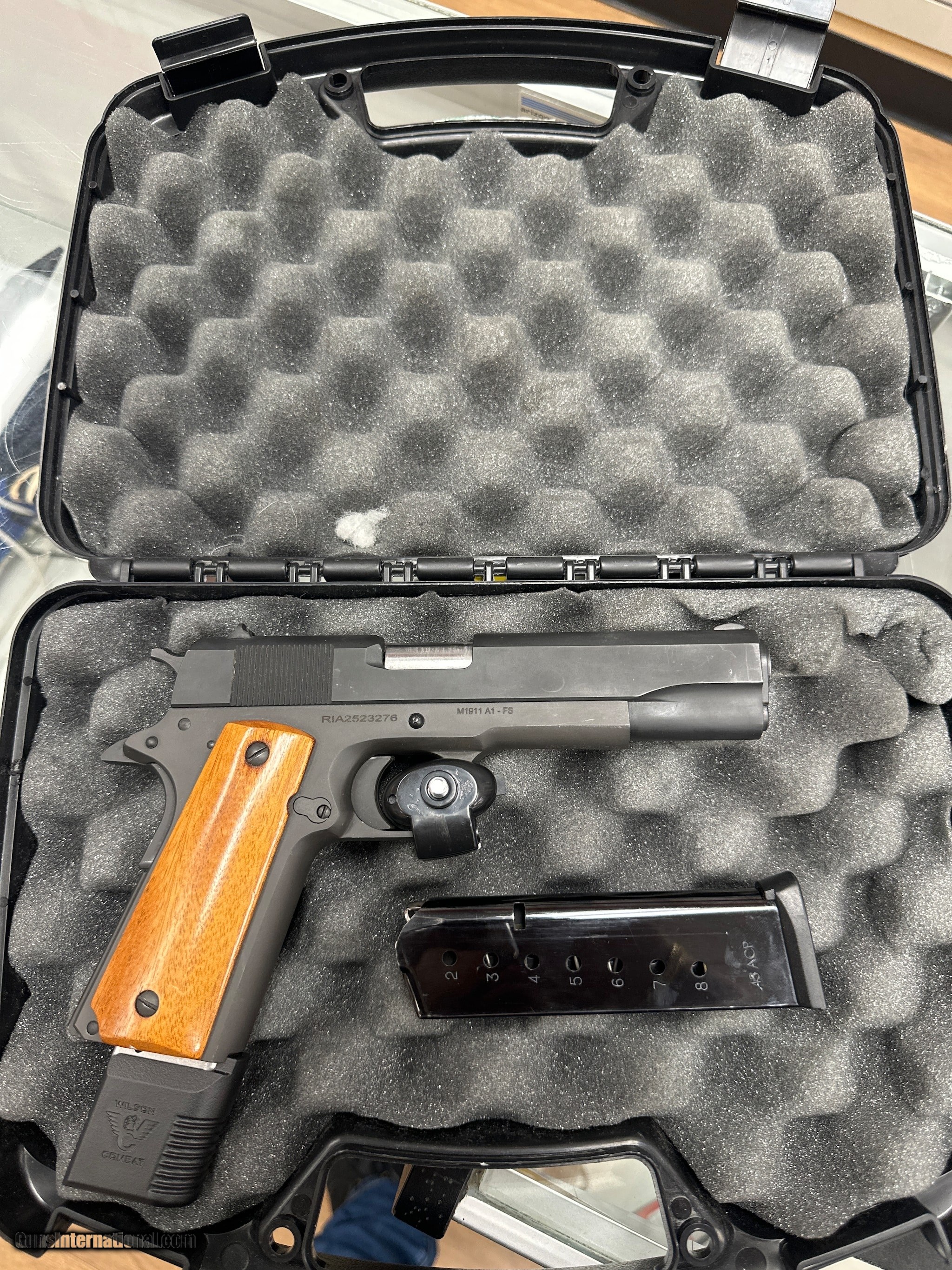 Description: Guns Listing ID: 859442 Used with carry case, 2 mags SOLD Manufacturer: ROCK ISLAND ARMORY Model: M1911 A1 Caliber Info: .45 ACP Condition: Used - Non-Certified Barrels: 4 BARREL Finish: BLACK /W WOOD STOCK |