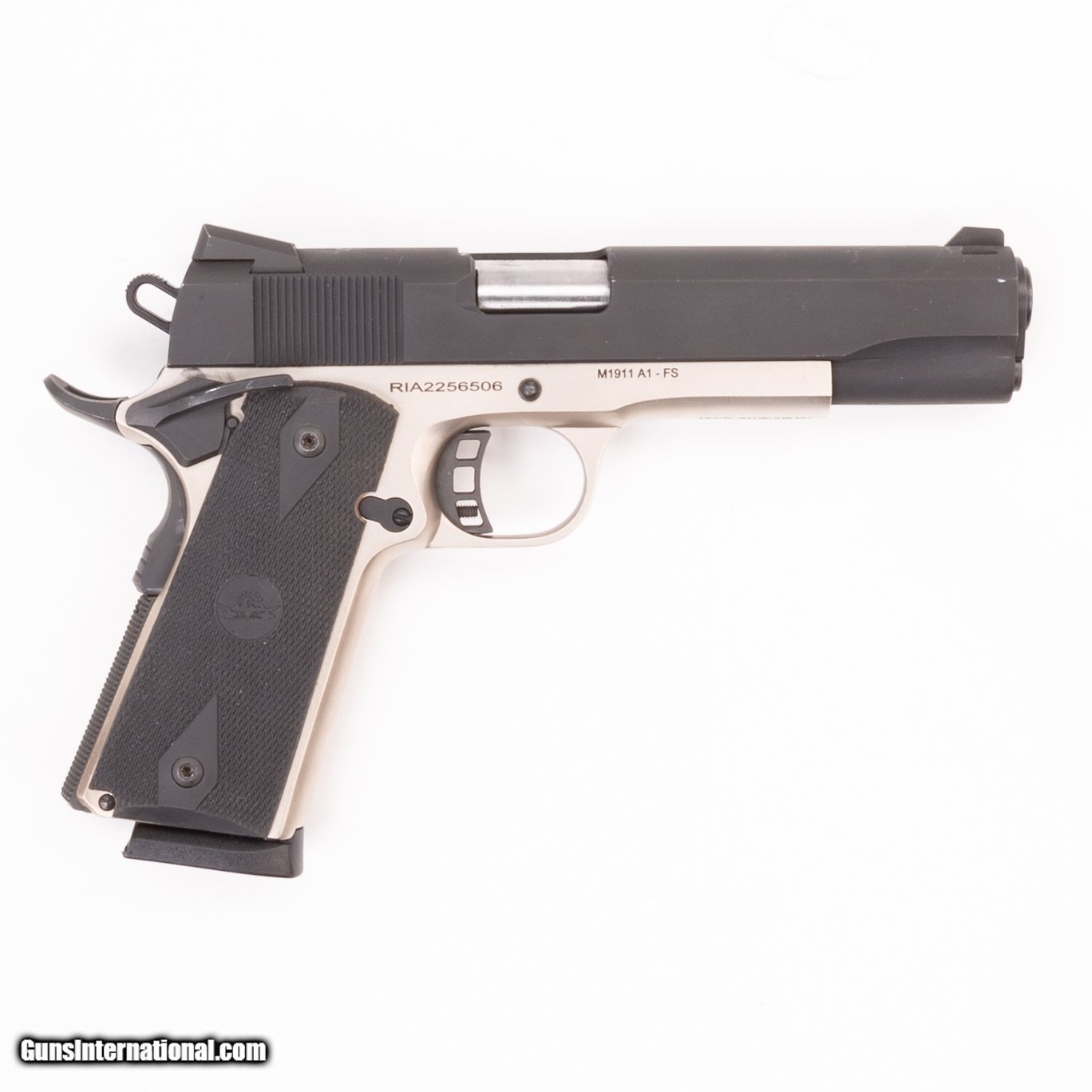 Description: Guns Listing ID: 401489 This 1911 A1 FS pairs a silver frame with a black slide and black rubber grips. It features a grip safety, ambidextrous thumb safety, and a square notch rear sight with blade front sight. One 8-round magazine is included. Get the best bang for your buck when you get a Certified Used Firearm . When you see the Certified Used stamp on any of our firearms, you can be confident that you‚‚re getting exactly what you want – a gun only in very good to excellent condition and held to the highest quality standard. All Certified Used Guns come with a ‚‚no questions asked‚‚ return policy . PLUS, ALL CERTIFIED USED GUNS SHIP FR SOLD Manufacturer: ROCK ISLAND ARMORY Model: M1911 A1-FS Caliber Info: .45 ACP Condition: Used - Certified Barrels: 5 BARREL Finish: TWO TONE. BLACK/SILVER Weight: 2.4 LBS. |