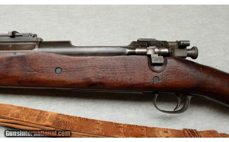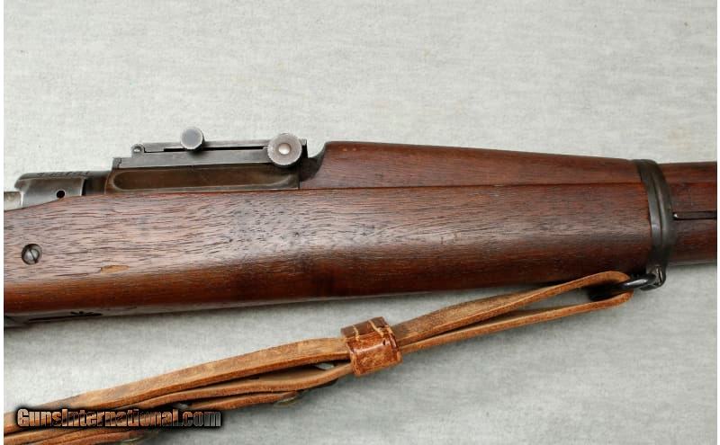 Description: U.S. Rock Island Arsenal Model 1903 Rifle. Receiver manufactured c.1919. "SA/12-30" barrel, "FJA" and "RA" replacement stock markings. With M1907 leather sling. Finish is very good as arsenal refurbished, with some light pitting and spotting, Stock is fine with some light scratches, and crisp stamps. Mechanically excellent. .30-06 Springfield SOLD Curio/Relic: Yes Metal Condition: good Wood Condition: good Bore Condition: Slight Darkening - Light to moderate pitting Barrels: 24" barrel Stock Dimensions: 13 Fore End: smooth walnut Butt Pad: metal Weight: 8 lb - 14 oz Sights: factory sights Item Location: La Vista, NE |