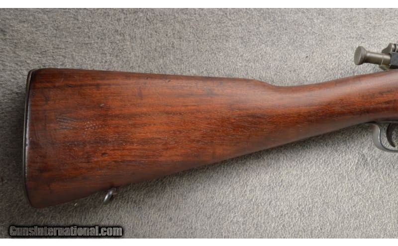 Description: This is a great example of the Rock Island Model 1903. Rock Island Arsenal production of the M1903 ended in 1919 at serial 348,414. The serial number on this one "368812" was probably finished by another manufacturer. The top of the receiver is marked "U.S. / ROCK ISLAND / ARSENAL / MODEL 1903. / 368812". The top of the barrel is marked "R A / flaming bomb / 12 43" with a "P' on the bottom side. The magazine cutoff is marked "ON OFF" and the safety is marked "SAFE READY". The bottom of the bolt handle is marked "9" with two punch marks and "R". The bolt housing is also marked with an "R". The milled barrel band is marked "U" and "R". The front sight is a blade on top of a barrel mounted base with an unmarked protective cover. The rear sight is a "U" notched blade attached to an adjustable sight ladder marked from "3-27". The adjustable blade, sight base, and ladder are all marked "O.L". The stock set is a two piece hardwood straight grip, metal nose cap with bayonet lug, stacking loop, barrel band, 2 sling loops, and a metal buttplate with hinged storage door. The stock does have a flaming bomb stamp at the nose of the stock. .30-06 Springfield Curio/Relic: Yes Chambers: Bolt action. Metal Condition: Grade 1 condition. Wood Condition: Grade 2 condition. It does show some minor compression marks in the wood. Bore Condition: Bright bore with sharp rifling. Barrels: 24" barrel. Triggers: Single trigger. Stock Dimensions: LOP about 13". Fore End: Smooth walnut. Butt Pad: Metal. Sights: Adjustable rear. Item Location: Owatonna, MN Price: $1,299.99 Contact Seller |