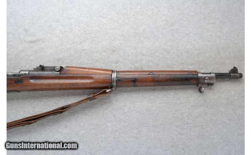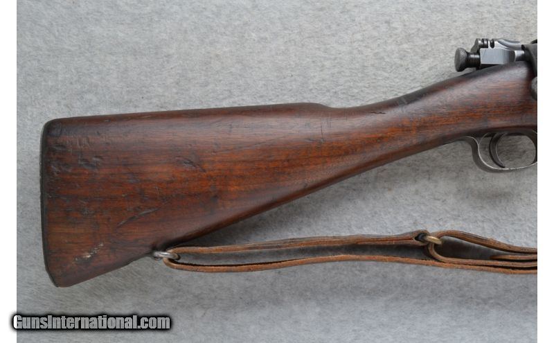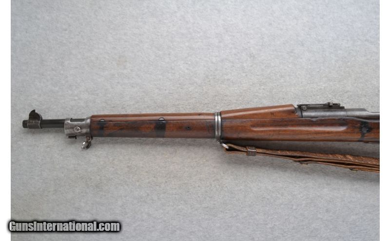 Description: This Rock Island Arsenel Model U.S. 1903 is a United States Military right hand bolt action rifle in .30-06 Cal. It has a 24 inch barrel that is stamped SA, has the arsenal flaming bomb and the date 10-42. It has a blade front sight and an adjustable middle sight. The stock is a smooth hardwood straight grip. This rifle is in good condition although the stock shows some handling or use marks. SOLD Curio/Relic: Yes Manufacturer: Barrel is stamped date stamped 10-42. Caliber Info: .30-06 Cal. Chambers: Bolt Action 5+1. Metal Condition: Good. Shows some wear and handling marks. Wood Condition: Fair. Has multiple handling / use marks. Spots of surface stain. Bore Condition: Very good. Barrels: 24 inch military finish. Triggers: Grooved. Stock: Smooth hardwood straight grip stock. Stock Dimensions: LOP 12 3/4 inches. Fore End: Smooth grip two piece hardwood with a barrel band and steel end. Butt Pad: Checkered steel plate with a trap door storage compartment. Includes cleaning kit. Weight: 9 lbs. 7 oz. Sights: Short blade front. Two position folding adjustable ladder middle. Extras: Comes with a leather sling. Item Location: Richfield, WI |
