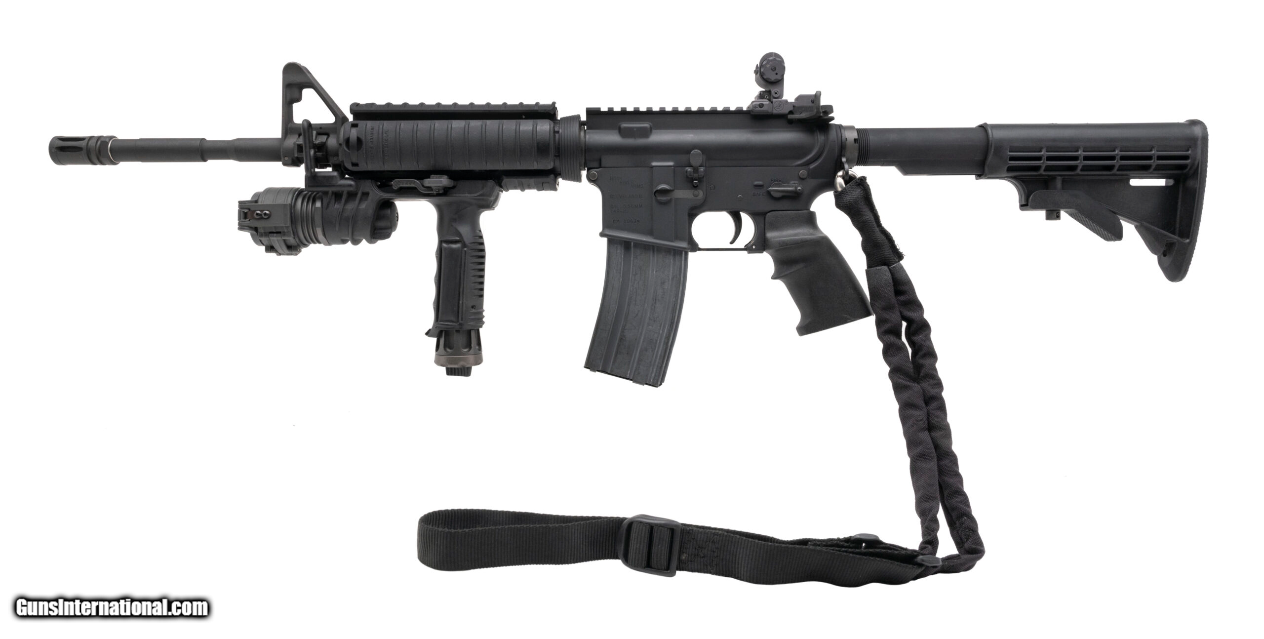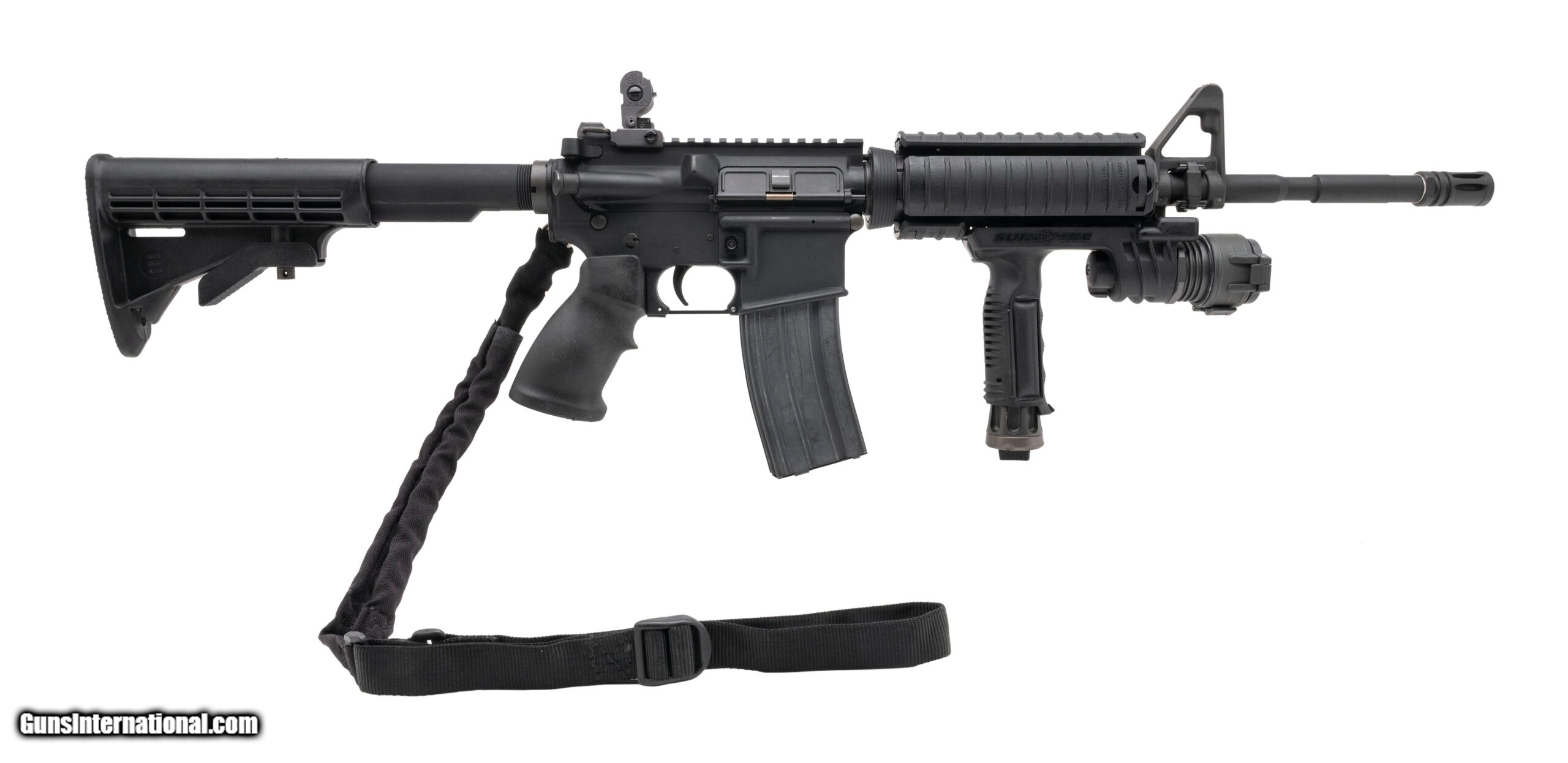 Description: "SN: CM18639. Modern production 5.56 NATO with a 16"" barrel. Bore is bright with excellent rifling. Semi auto rifle with Surefire Foregrip/ light combo and right palm swell. Upgraded charging handle. Finish is in very good condition. Polymer stock is in very good condition with wear from charging handle. Overall condition is very good. SOLD |