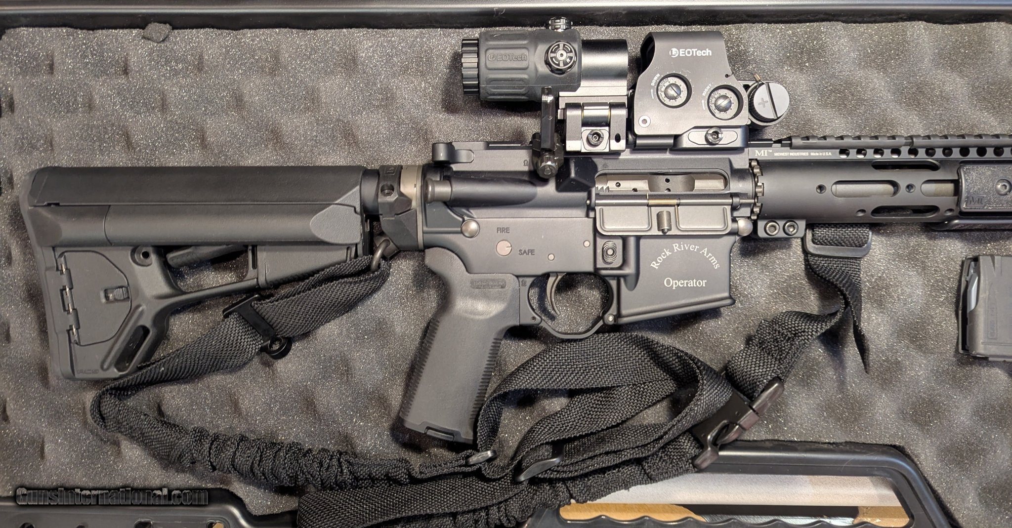 Description: Guns Listing ID: 544562 Comes with original case, 3-30 round magazine, 1-10 round magazine, super slim Magpul canted iron sights, Tactical Link sling, adjustable Magpul ACS stock, Midwest Industries handguard and rail covers, EOTech sight and Magnifier, and Magpul K2 rubberized grip with storage. SOLD Manufacturer: ROCK RIVER ARMS Model: LAR-15 Caliber Info: 5.56X45MM NATO Condition: Used - Non-Certified Barrels: 16.5 BARREL Action: SEMI AUTOMATIC Finish: black |