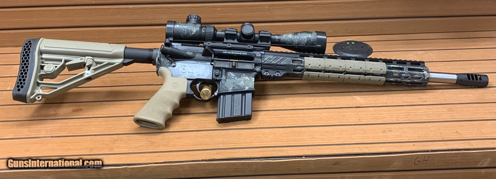 Description: Guns Listing ID: 1162418 Used Rock River Arms 450 Bushmaster, Vortex Crossfire 3-9x40, custom paint SOLD Manufacturer: ROCK RIVER ARMS Model: LAR-15M Caliber Info: .450 BUSHMASTER Condition: Used - Non-Certified Barrels: 18 BARREL Finish: CAMO |