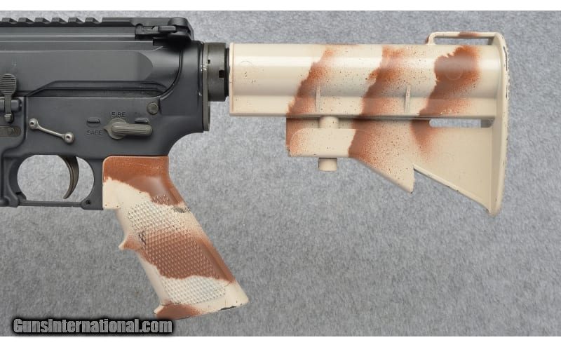 Description: Scattered scratches, rattle-can camo on the polymer parts. Solid, very good bore, includes (1) steel and (1) polymer 32 round mag. 9mm Luger SOLD Bore Condition: "Bright, Sharp Barrels: "16.5 Inch, A1 Flash Hider Triggers: Single Stage Stock Dimensions: Telescopic Fore End: "Polymer, R-4 Handguard Weight: 7 lbs. 4oz. Sights: Optics Ready Rail. A2 Front Sight Item Location: Buda, TX |