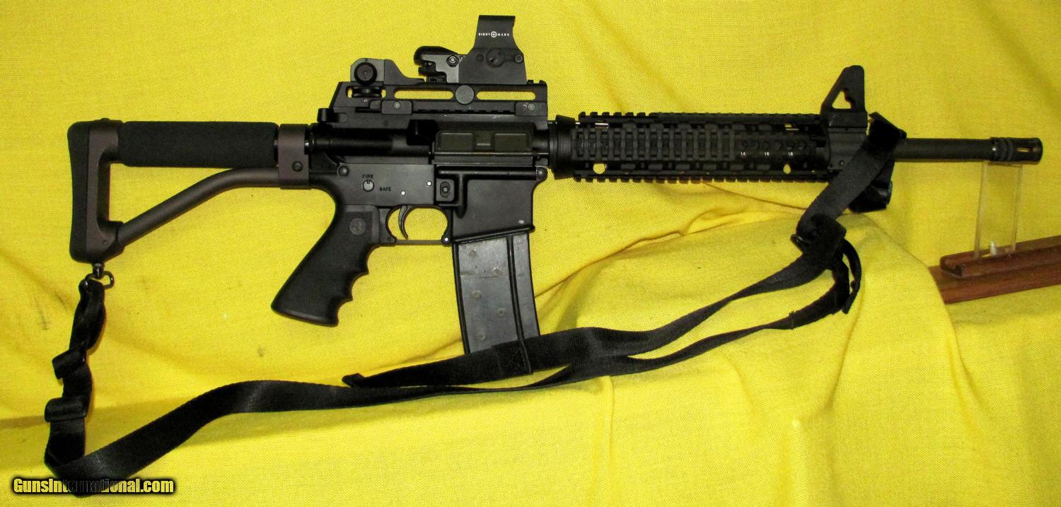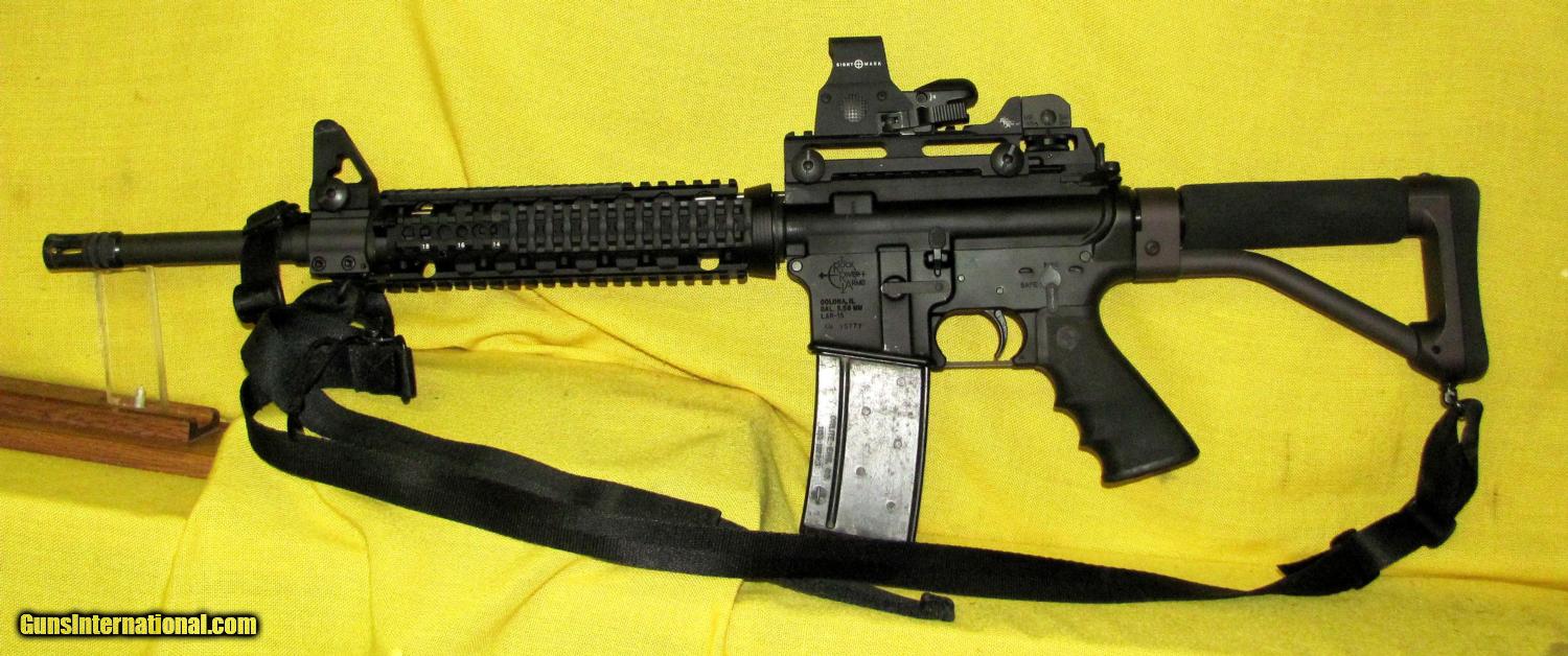 Description: ROCK RIVER ARMS model LAR15 in .223 CAL., with 17 1/2 " barrel. Color BLACK. ROCK RIVER ARMS LAR-15, COMES WITH PICATINNY GAS BLOCK WITH A REMOVABLE FRONT SIGHT, FIXED BIRD CAGE FLASH HIDER WITH HEAVY BARREL WITH BRIGHT SHINNY BORE, PICATINNY RAIL SYSTEM, PICATINNY FLAT TOP WITH A REMOVABLE ROCK RIVER PICATINNY REAR SIGHT SYSTEM, COMBAT CHARGING HANDLE, QUICK RELEASE SIGHT MARK SIGHT MARK RED DOT, ACE SKELETON STOCK, ONE THIRTY ROUND MAGAZINE. OUR NEW STOCK # D31142 Condition 97%. Serial number CM33777. SOLD |