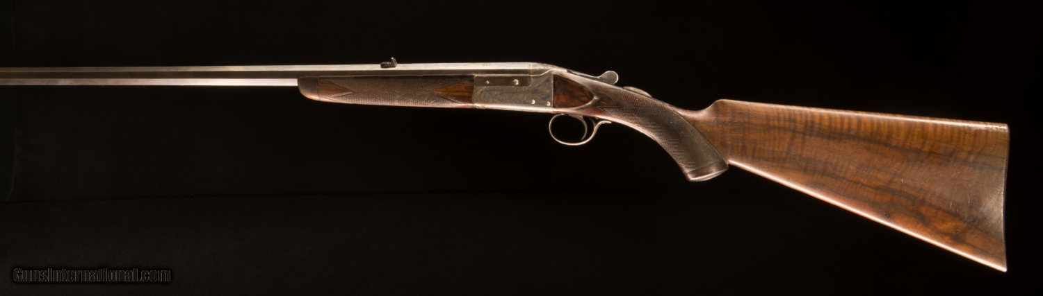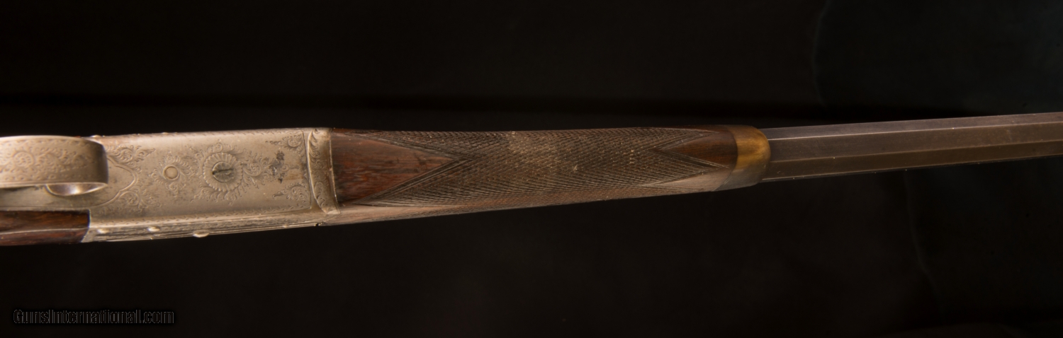 Description: 50% case colors left on the wonderful little rifle by one of the worlds best sporting arms makers. I guess I am a bit biased. It is what I shoot. SOLD Antique: Yes Manufacturer: Boss & Co. Rook rifle, How rare is that! Serial Number: 6005 Ejectors: No Barrels: 27 Barrel Type: Steel Action: top lever boxloxk Gauge Info: Caliber LOP: 14 1/2 Weight: 5 lbs. 3.5 oz. Choke Left: NA Choke Right: NA Proof:Nitro: .255 x 1 1/8" - Cord Minimum Wall Thickness Left: NA Minimum Wall Thickness Right: NA |