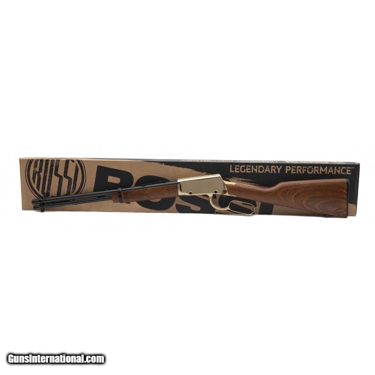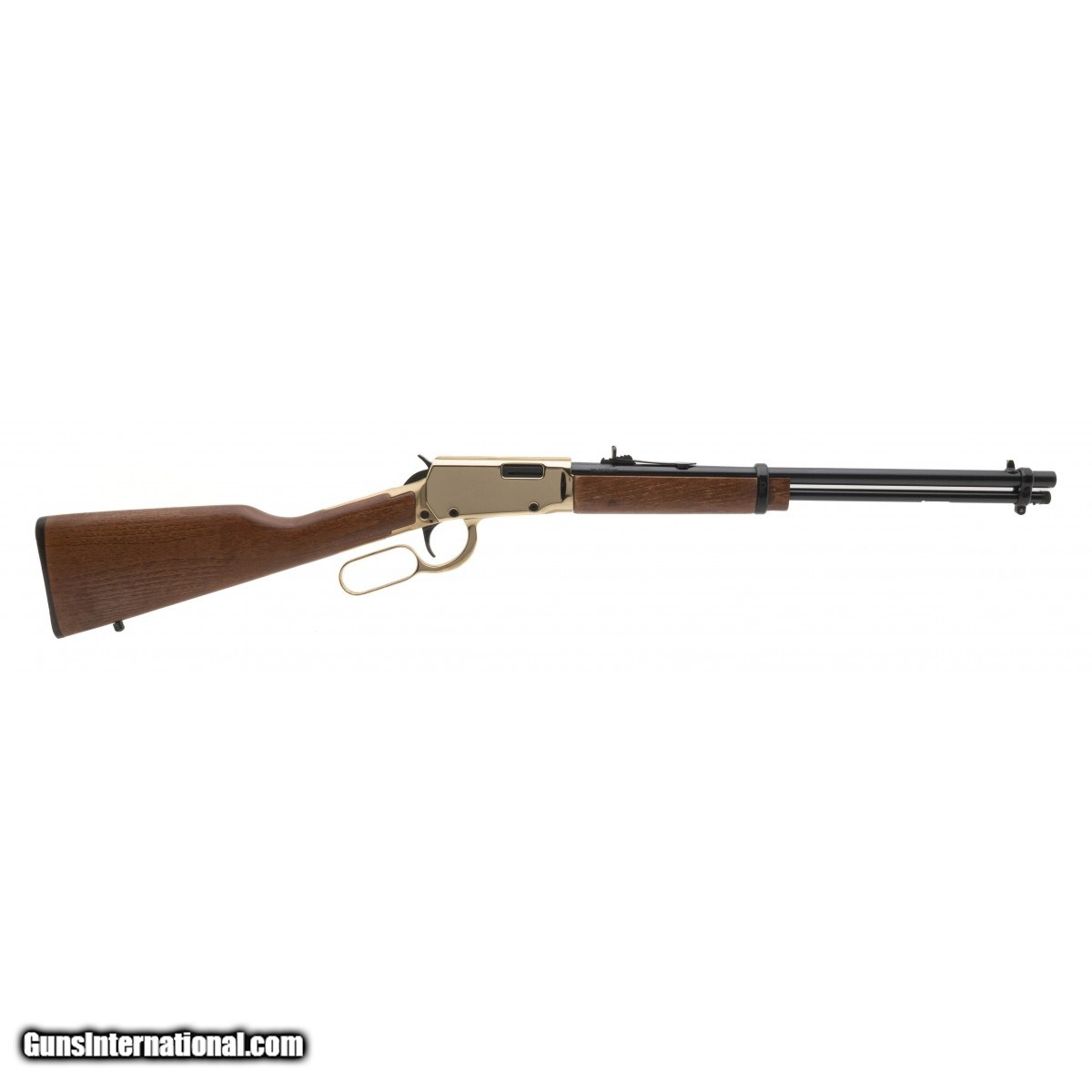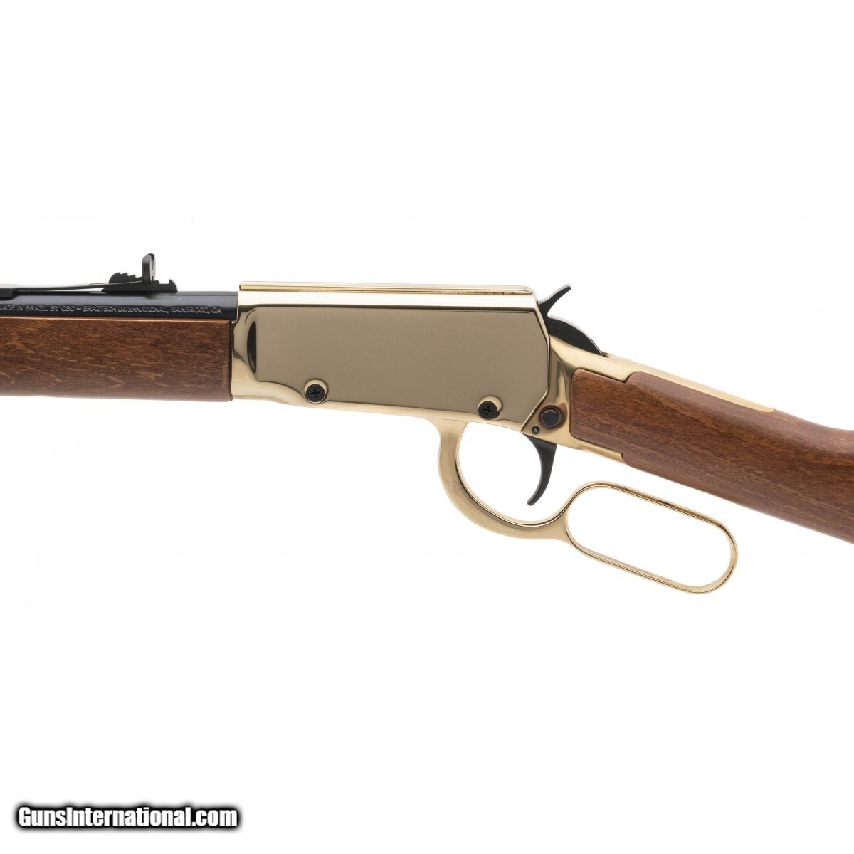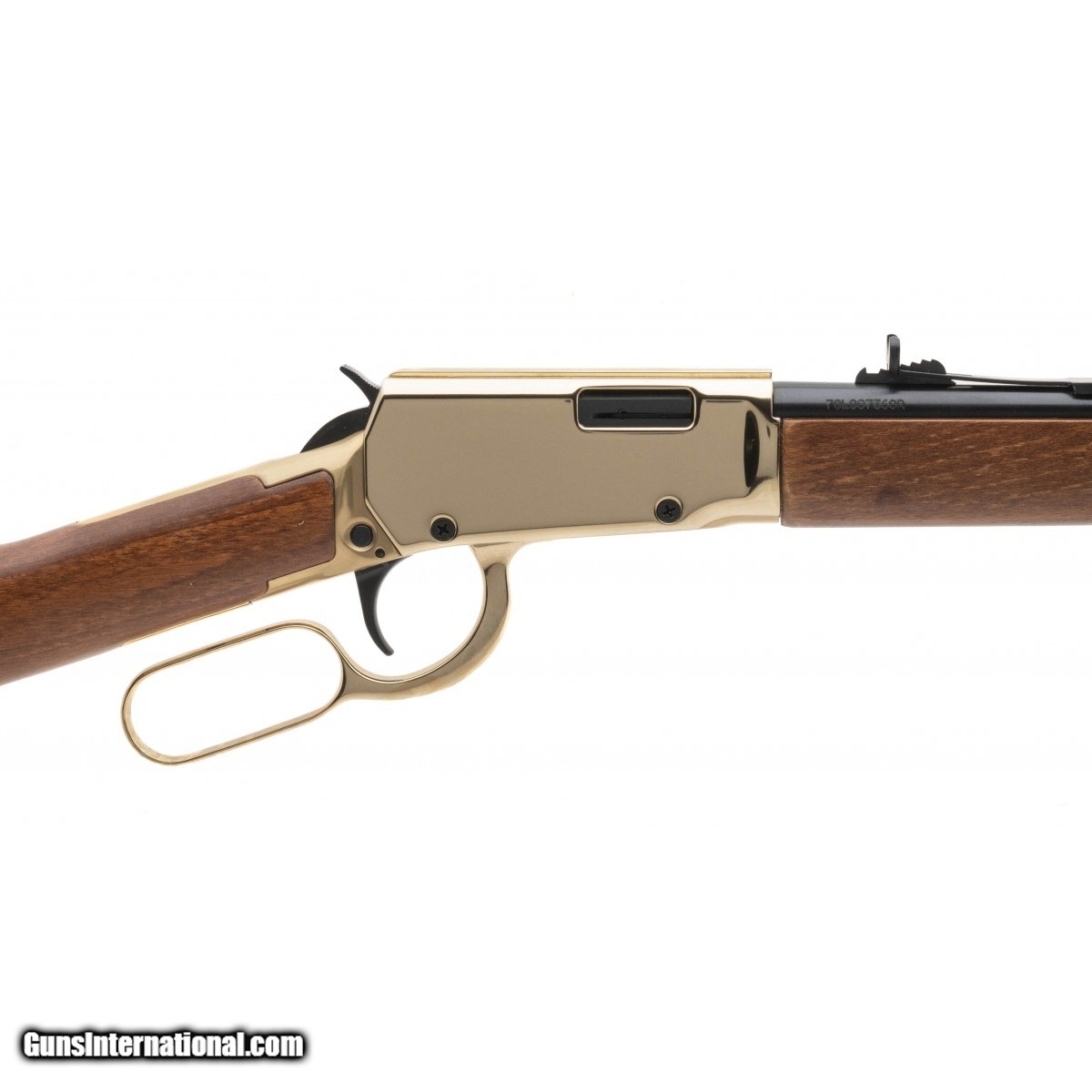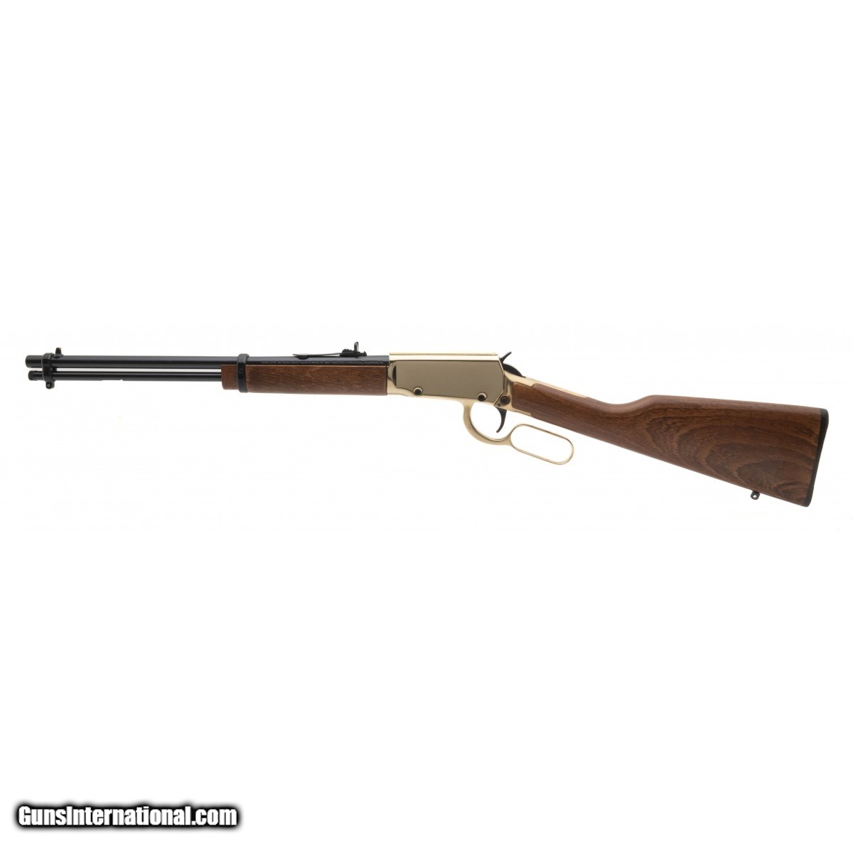 Description: " 18"" lever action rifle with a Gold PVD receiver, Blued barrel, adjustable irons, 15RD capacity, &, a wooden stock. NEW. UPC:754908255702. SOLD |