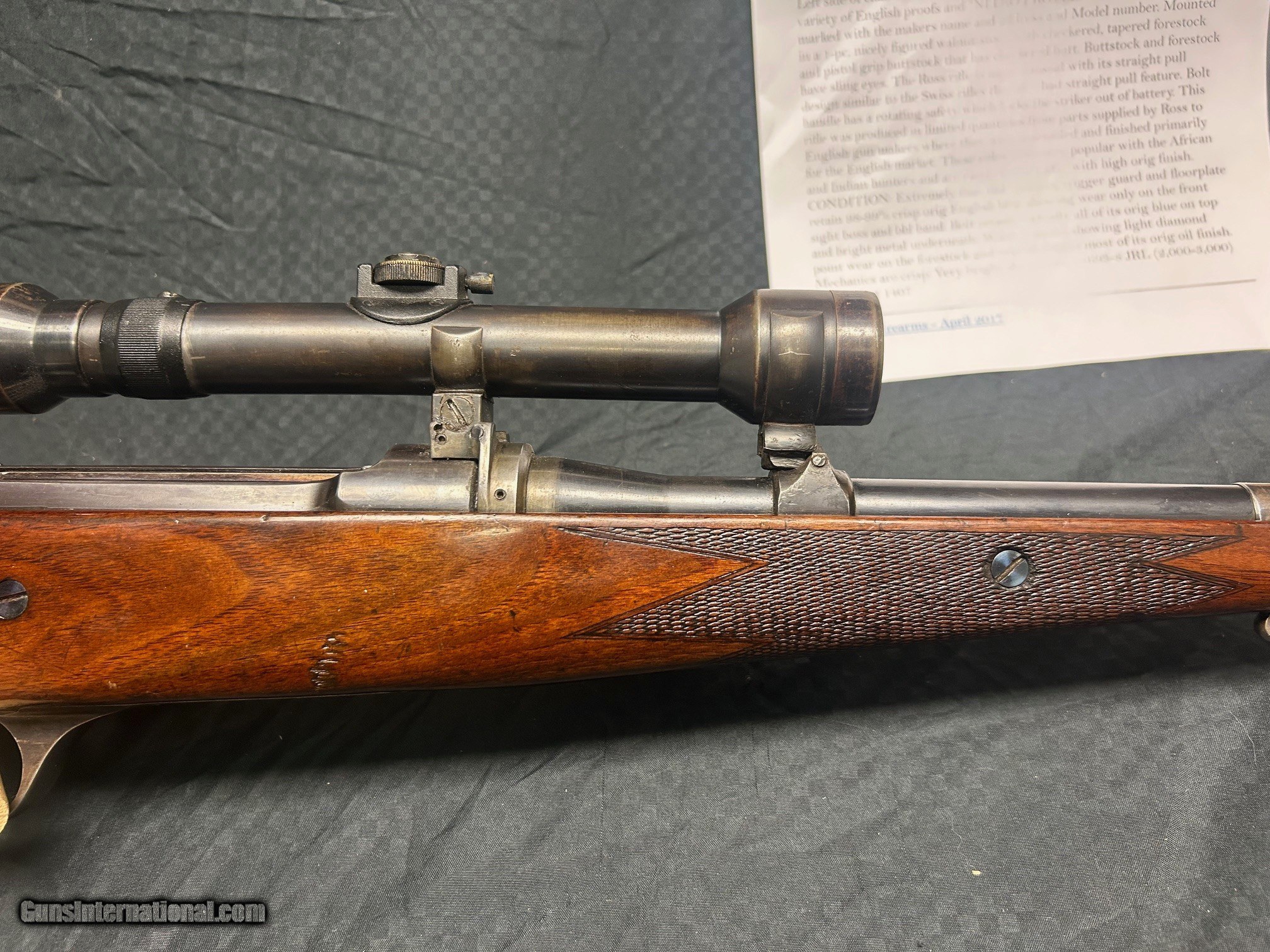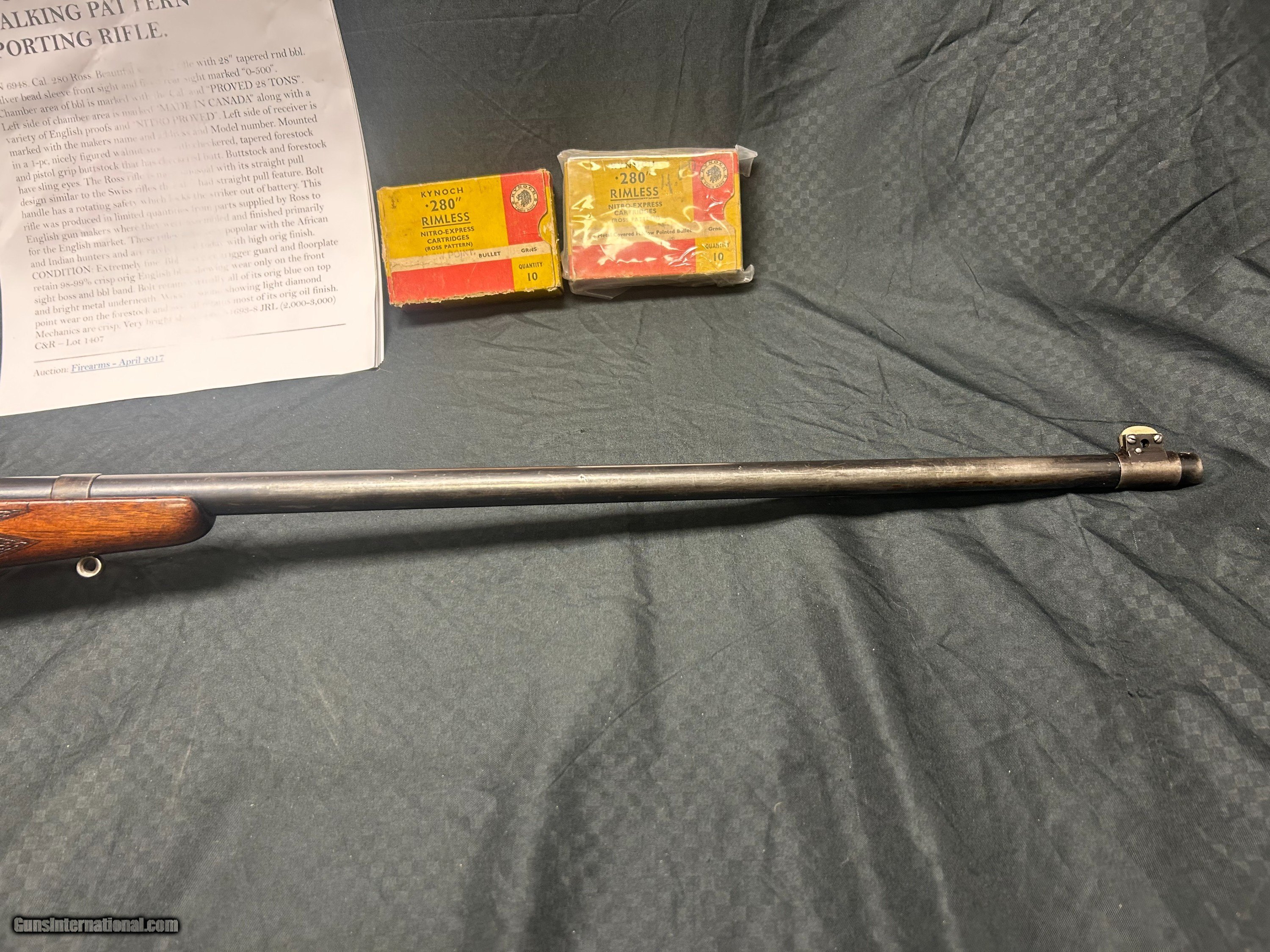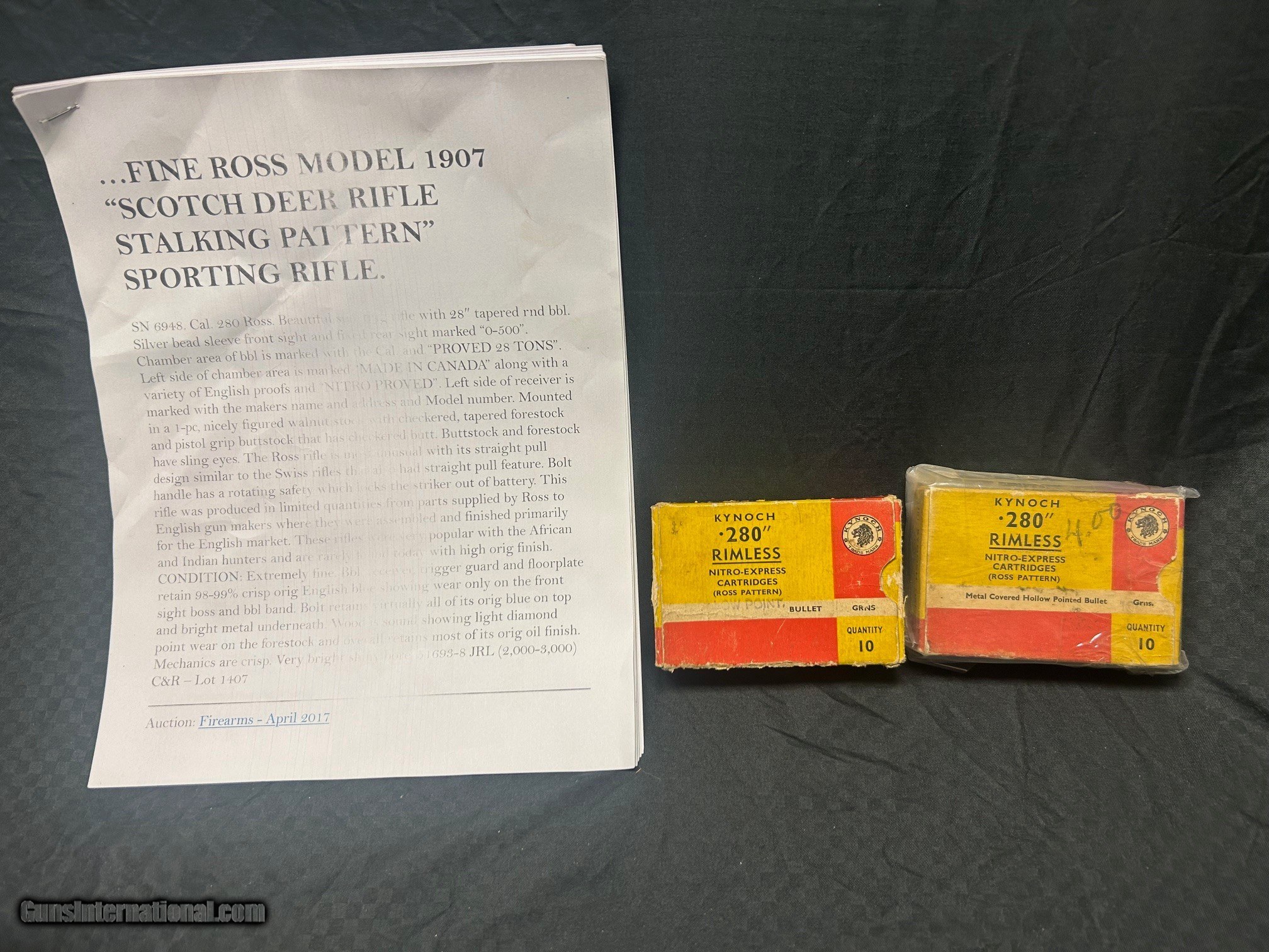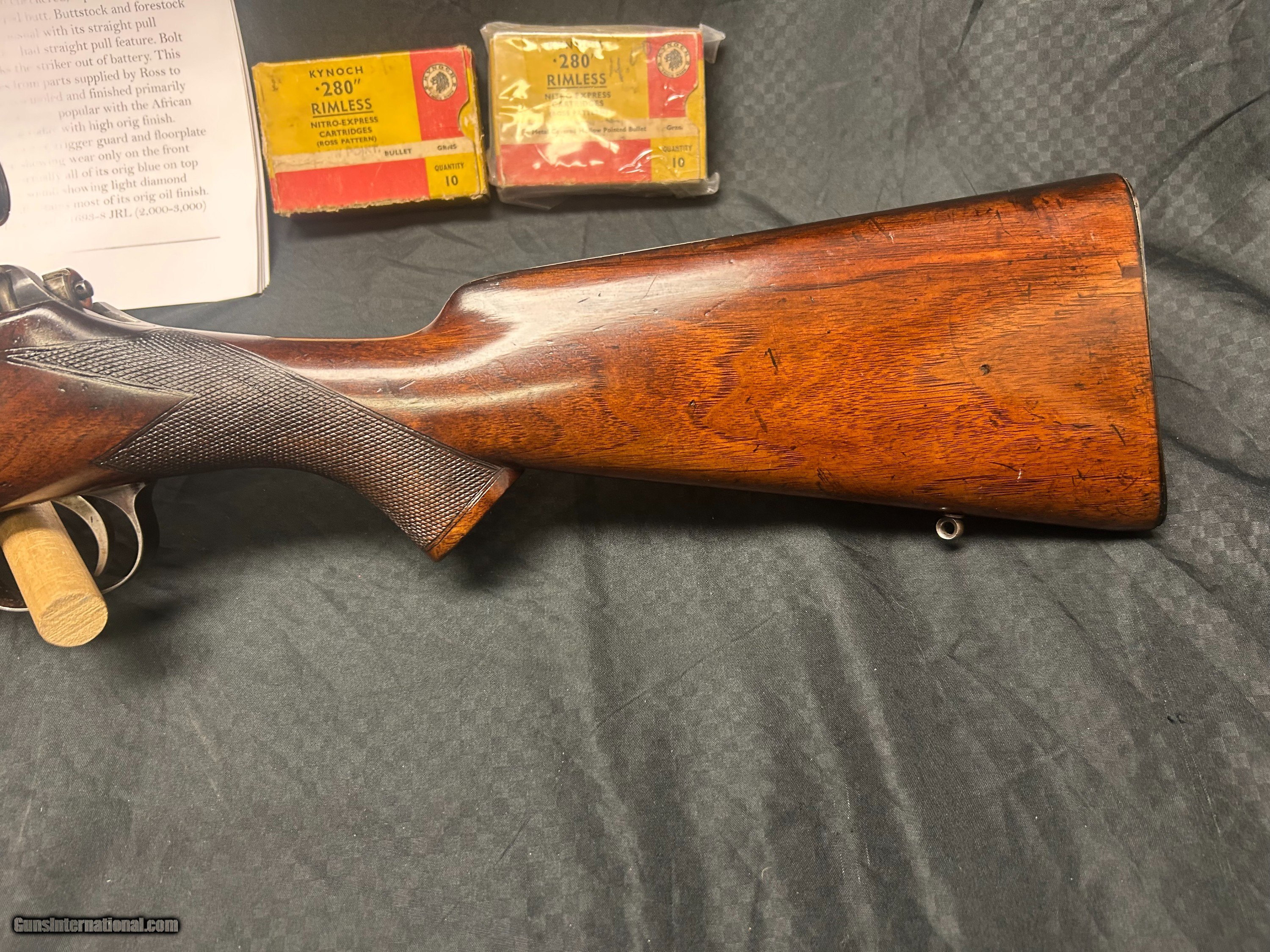 Description: What we have to offer is a Ross rifle made in Canada. This ross is a model 1905 that comes in the 280 Rimless Nitro Express Cartridges ross pattern. This gun comes with a blued 28 inch barrel. Has two boxes of factory ammo that comes with it. Will need to be shipped different from gun. The serial number is 6948. NOTE WE DO ADD 3% FOR ALL CARDS BUYER WILL PAY FOR SHIPPING SOLD Rifle Caliber: .280 Ross Manufacturer: Ross Model: 1905 Serial Number: 6948 Barrel Length: 28 Condition: 90% Metal Condition: 92% Wood Condition: 95% Bore Condition: Excellent |
