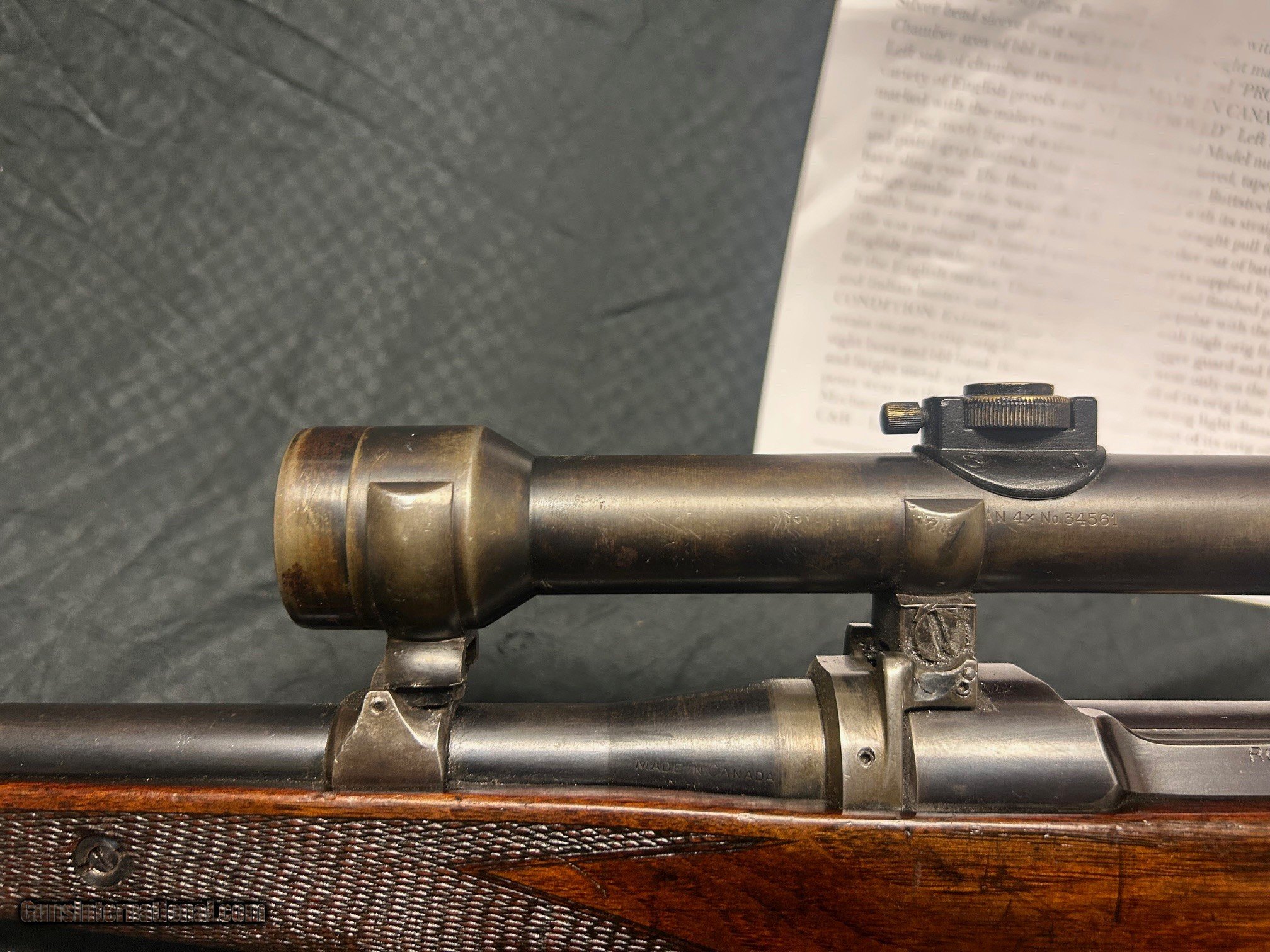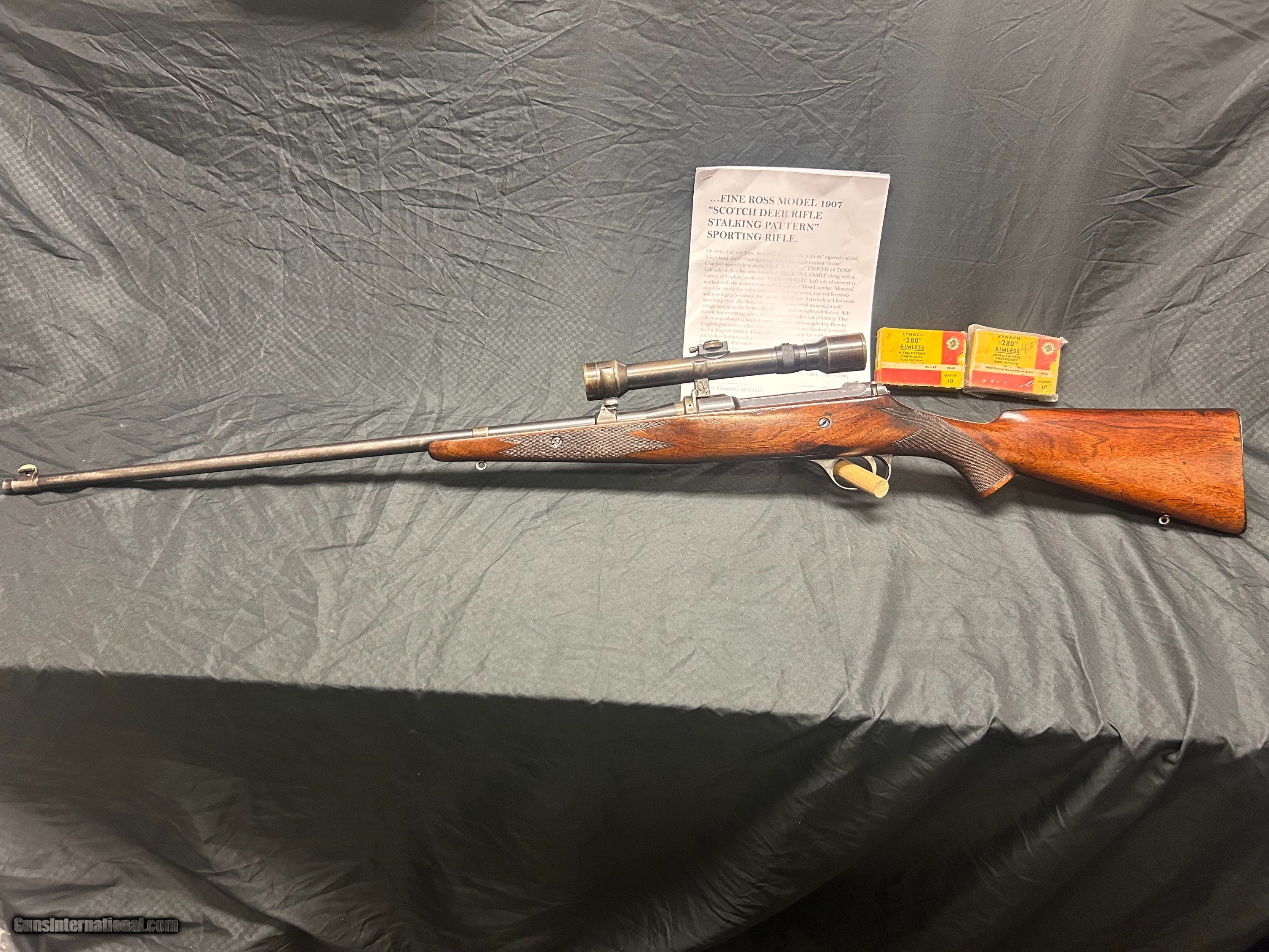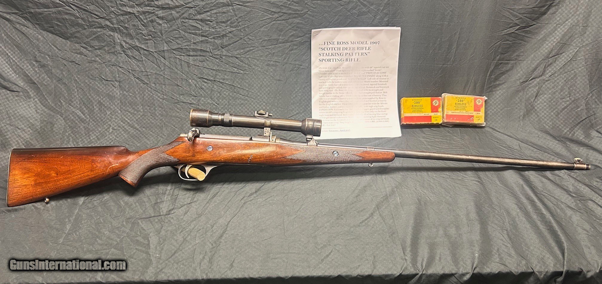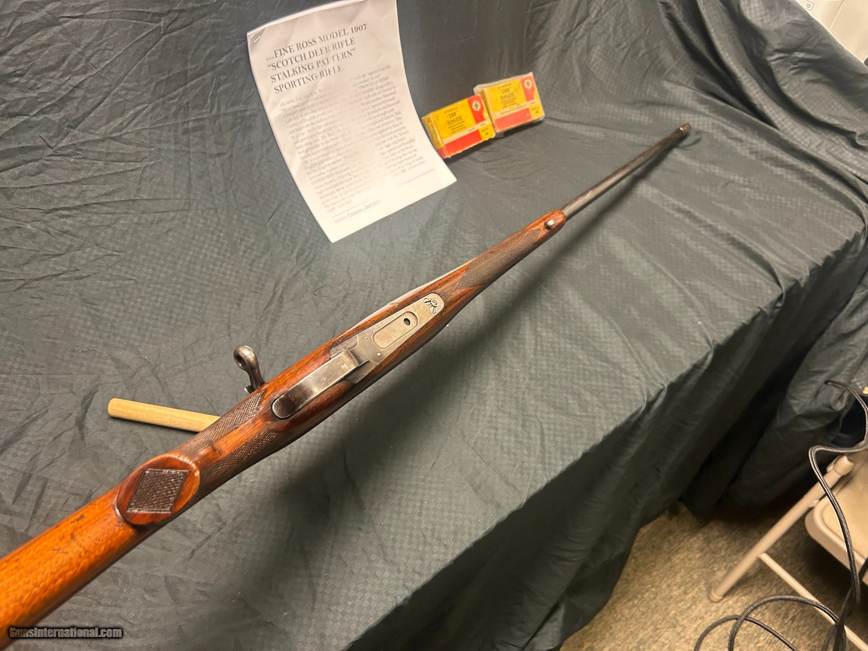 Description: What we have to offer is a Ross rifle made in Canada. This ross is a model 1905 that comes in the 280 Rimless Nitro Express Cartridges ross pattern. This gun comes with a blued 28 inch barrel. Has two boxes of factory ammo that comes with it. Will need to be shipped different from gun. The serial number is 6948. NOTE WE DO ADD 3% FOR ALL CARDS BUYER WILL PAY FOR SHIPPING SOLD Rifle Caliber: .280 Ross Manufacturer: Ross Model: 1905 Serial Number: 6948 Barrel Length: 28 Condition: 90% Metal Condition: 92% Wood Condition: 95% Bore Condition: Excellent |