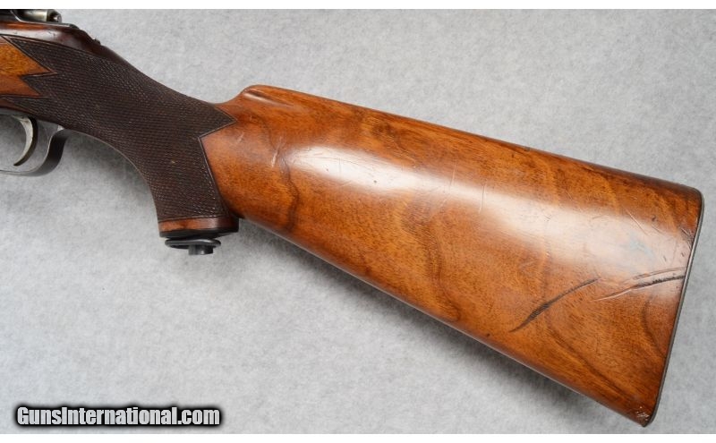 Description: SOLD Caliber Info: .280 Ross Metal Condition: Good with scratches and finish wear. Wood Condition: Good with handling marks. Bore Condition: Shiny with good rifling. Barrels: 26 Stock: Checkered walnut. Fore End: Checkered walnut. Butt Pad: Textured steel. Weight: 7-lbs., 4-ozs. Sights: Front blade, flip-up rear blade. Item Location: Fort Worth, TX |