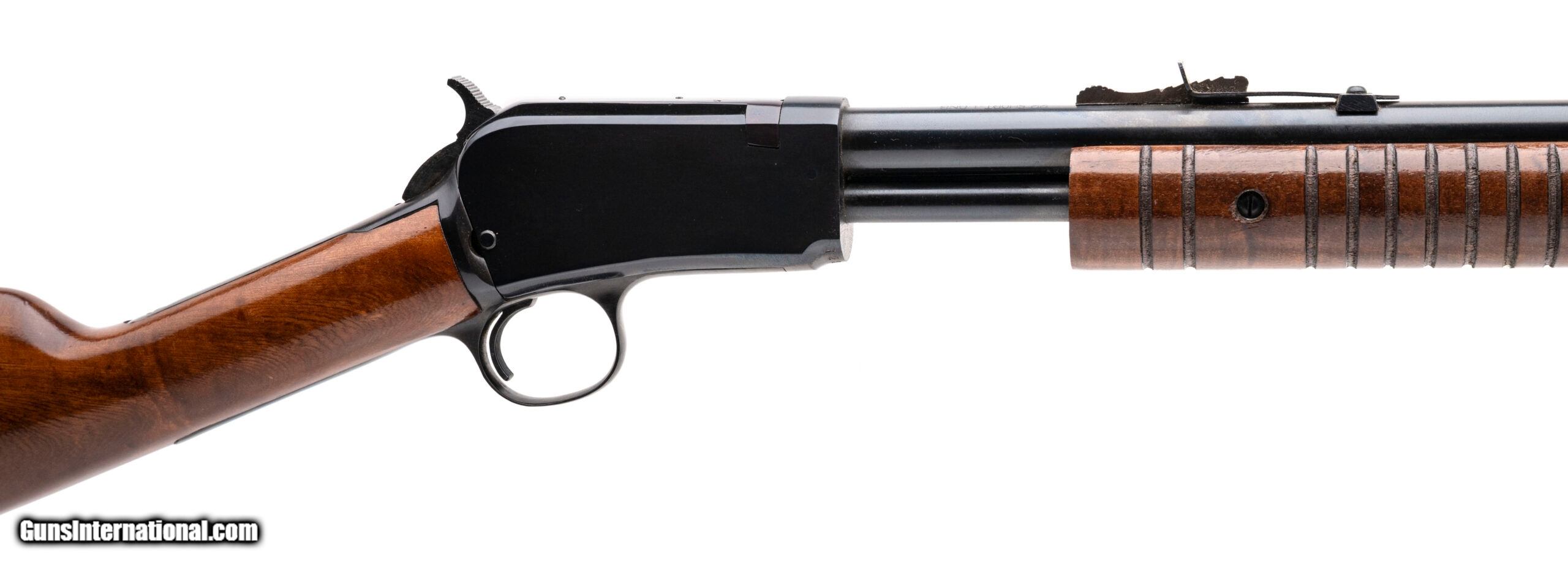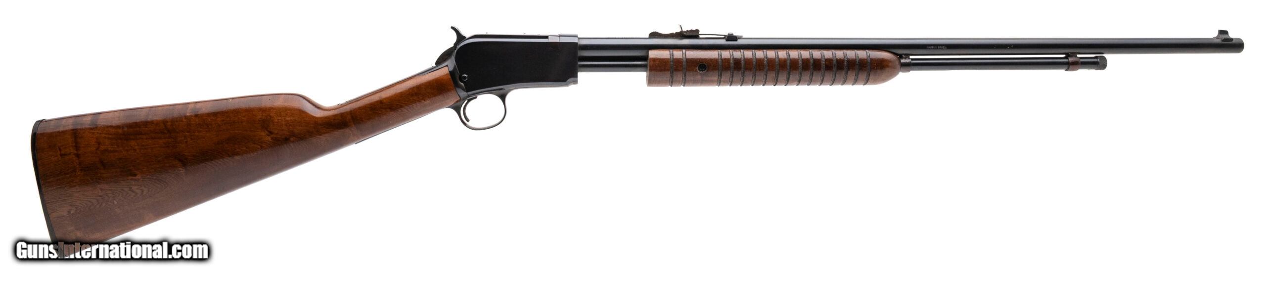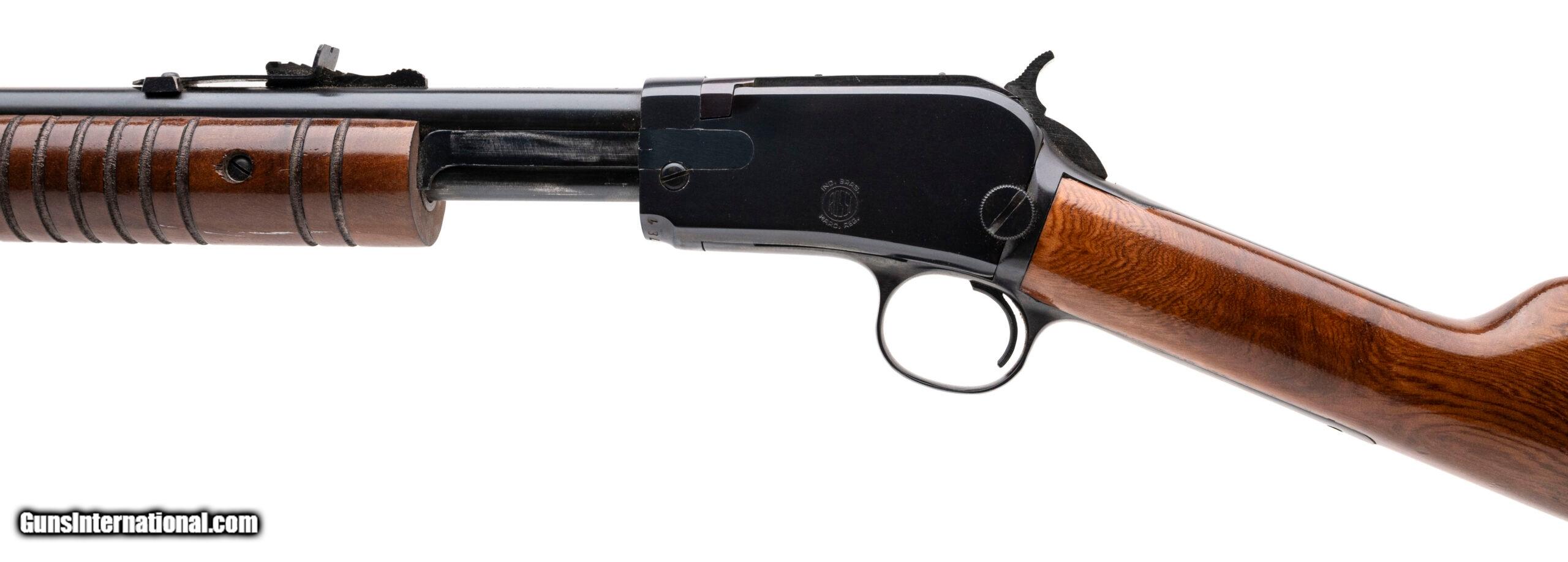 Description: "SN: G227781 made in Brazil. Pump action 22 caliber takedown rifle with a 23"" round barrel with iron sights, blued metal finish and walnut furniture with original butt plate. Overall in very good condition with minimal handling marks and a good bore with strong rifling. Price: $449.95 Contact Seller |