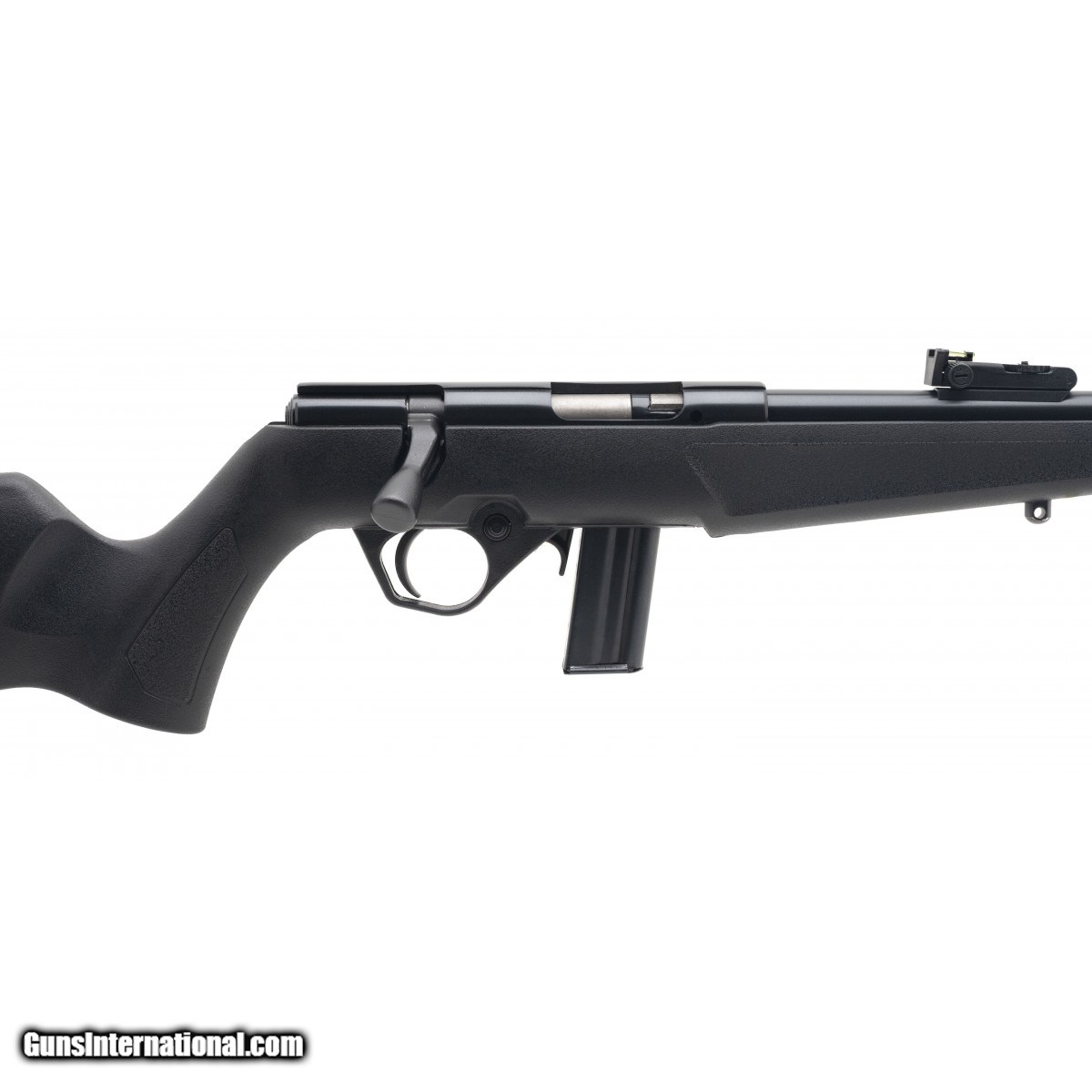 Matte black finish on barre/receiver. Synthetic stock. Compact bolt action with a 16"" threaded barrel. Adjustable fiber optic sights. 10rd magazine capacity. NEW. UPC:754908321407