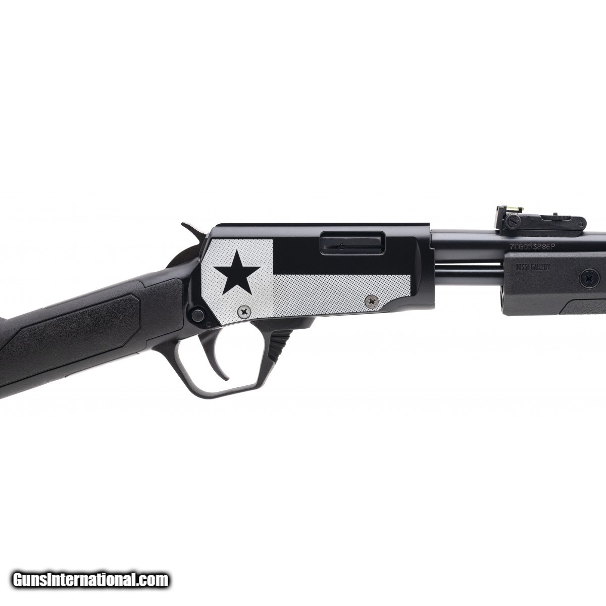 Description: " Pump action .22 LR rifle with 18"" barrel. 15 Round magazine tube and Texas flag engraved receiver. NEW. UPC: 754908299805 (STOCK PHOTO) SOLD |