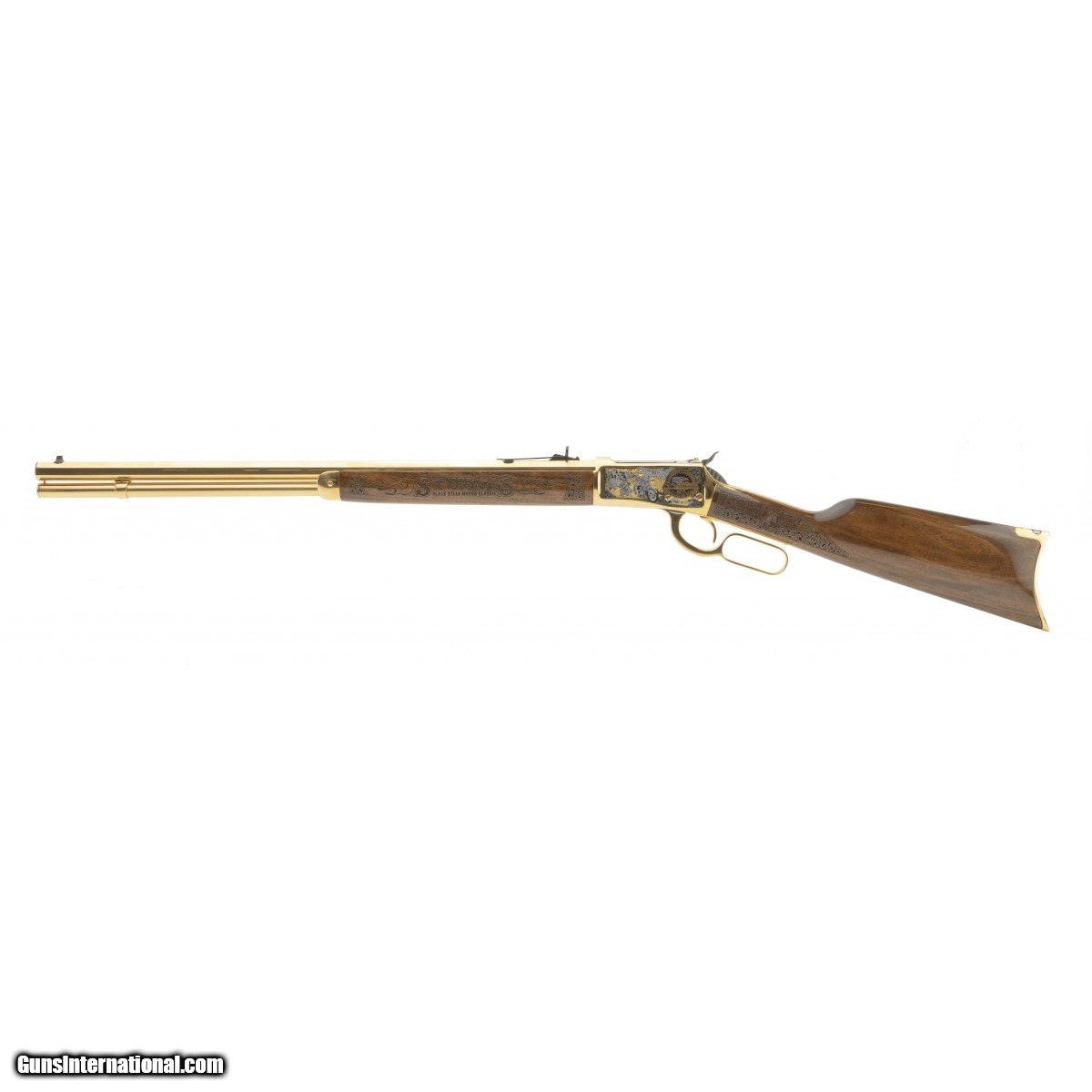 Description: " Rossi Model 92 .45LC Sturgis Commemorative rifle. Has a gold plated finish, engraved receiver and laser carved stock. A beautiful, extra fancy piece! With box and sleeve. SOLD |