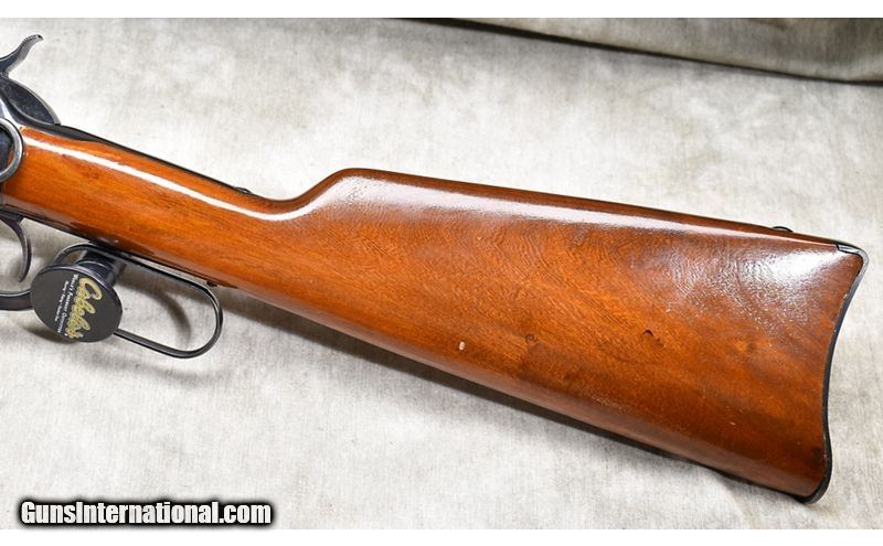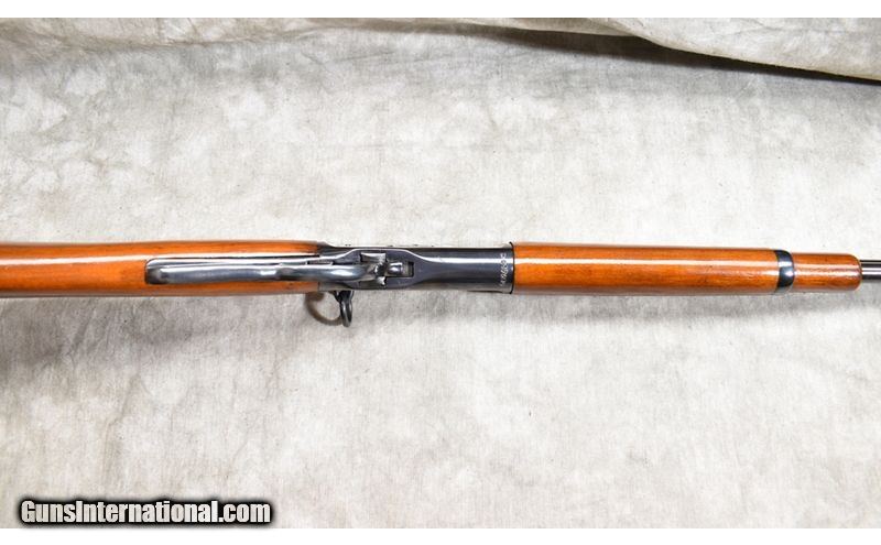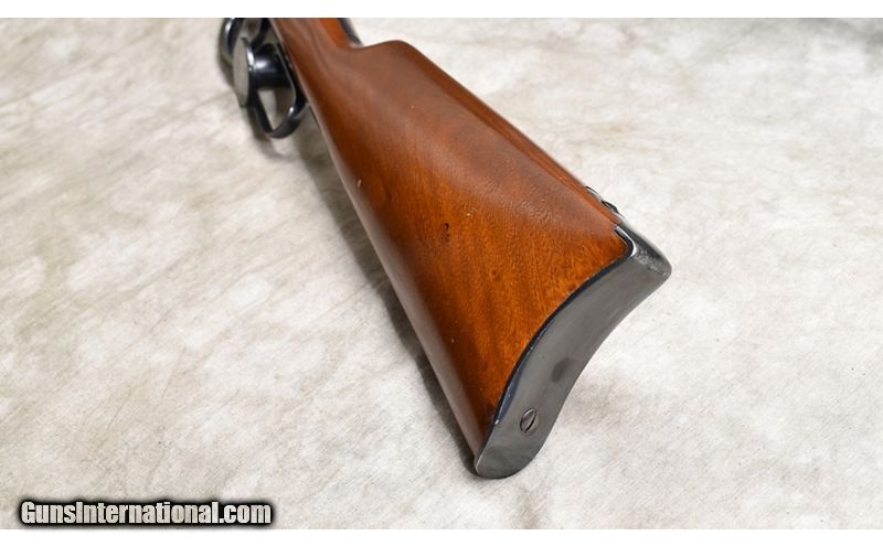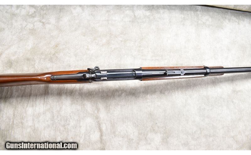 Description: This near carbon copy of the Winchester Model 94 carbine features a nice hardwood stock, .38/.357 chambering, and saddle ring. .357 Mag/.38 spl SOLD Chambers: 10 rounds Metal Condition: "Very good overall. There are a few handling marks and scratches, especially around the loading port. Wood Condition: Very good. Very light handling marks. Bore Condition: Shiny and bright. Barrels: 20-inch Triggers: Factory trigger. Stock Dimensions: 13-inch LOP Fore End: Well-matched hardwood. Butt Pad: Curved steel plate. Weight: 6 lb - 2 oz Sights: Post and notch open sights. Item Location: Rogers |