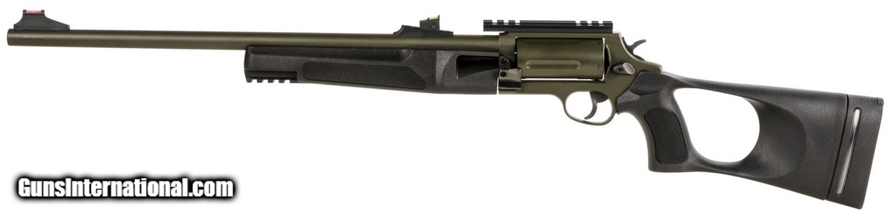 Description: Manufacturer: Rossi Model: Circuit Judge Tactical Sku: SCJT4510B Gauge: .45 Colt / .410 GA Barrel Length: 18.5" Chamber: 3" Capacity: 5 Shot Metal Finish: OD Green Cerakote Chokes: Straight Rifle Choke & Thread Protector Sleeve Action: DA/SA Stock: Black Synthetic Thumbhole Grip Sights: Fiber Optic Front, Adjustable Rear Overall Length: 31.8" Weight: 5.2 lbs All items are factory new in box unless otherwise stated. Based on the information available to us, the above specifications describe this item to the best of our knowledge. For further information, please contact or visit the manufacturer's . SOLD |
