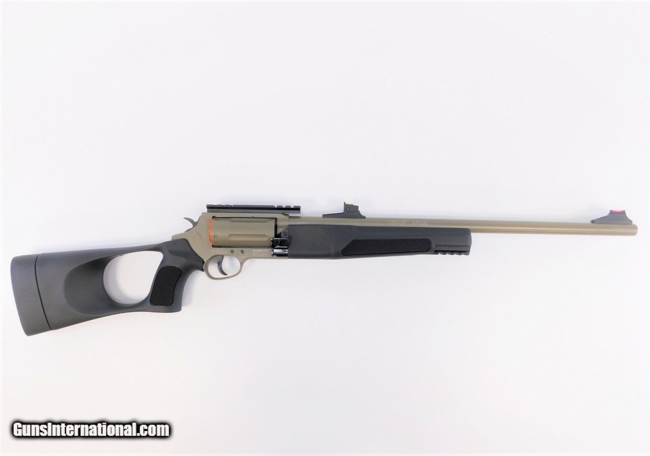 Description: Manufacturer: Rossi Model: Circuit Judge Tactical Sku: SCJT4510D Gauge: .45 Colt / .410 GA Barrel Length: 18.5" Sand Chamber: 3" Metal Finish: Sand Capacity: 5 Shot Chokes: Straight Rifle Choke & Thread Protector Sleeve Action: DA/SA Stock: Black Synthetic Thumbhole Grip Sights: Fiber Optic Front, Adjustable Rear Overall Length: 31.8" Weight: 5.2 lbs All items are factory new in box unless otherwise stated. Based on the information available to us, the above specifications describe this item to the best of our knowledge. For further information, please contact or visit the manufacturer's . SOLD |