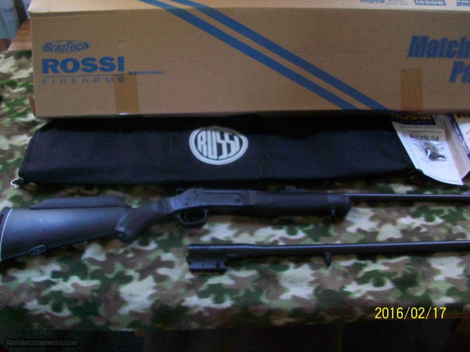 Description: rossi combo gun model S20 matched pair 223 remington barrel with fiber optic sights and weaver style scope base and 20 gauage ,modified choke with front bead both barrels are 22 inches comes with carry case for gun with both barrels,also taurus security system to lock gun from fireing new in box with all paper work for more information call 570-468-2437 SOLD |