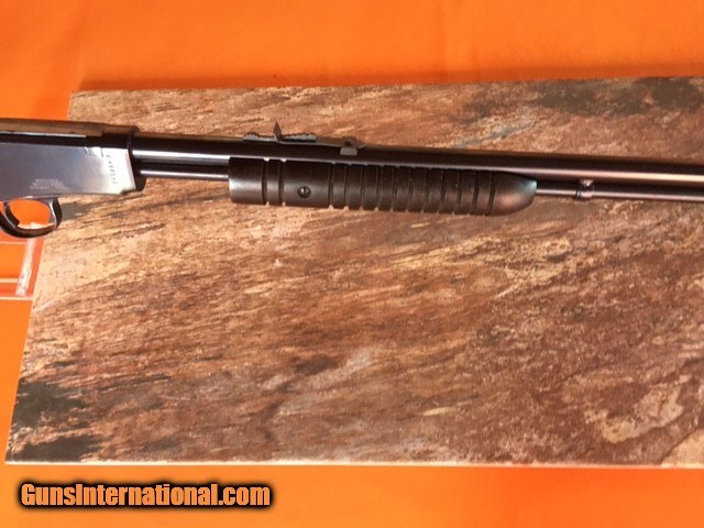 Description: Rossi Model 62SA - Slide Action - .22 LR. Rifle - 14 shot LR. Tubular magazine. 23 in. lg. round barrel, 39.25 in overall lenght. Takedown style all metal receiver . Blade front sight , open adjustable rear sight. Walnut stock with straight grip. Grooved walnut forend. Similar in design to the Winchester model 62. This rifle by all standards is new or like new. Purchased from a private estate not sure it was ever fired. Bore, barrel , receiver , stock , butt plate and bluing like new. Manufactured from 1978 - 1998 . This is a rare find and certainly collector quality. SOLD We will ship to your FFL at extra charge. SOLD Rifle Caliber: .22 Long Rifle Manufacturer: Rossi Model: 62SA Serial Number: G458542 Barrel Length: 23 IN. Condition: like new Metal Condition: like new Wood Condition: like new Bore Condition: clean/ bright |
