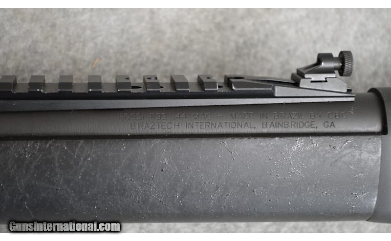 Description: Rossi has an excellent long-standing reputation for producing reliable and accurate firearms at affordable prices. The Rossi R92 Carbine is an excellent ranch, range or brush rifle. It has that vintage look and feel of the rifles that won the west, but this it not your grandpa's old lever action. With authentic craftsmanship, cutting-edge engineering and state-of-the-art processes, the Model 92 is a traditional lever action rifle for today's modern shooters. This rifle is in excellent condition. .44 Remington Magnum SOLD Chambers: 44 Rem. Mag. Metal Condition: Excellent Bore Condition: Bright and shiny Barrels: 16.5" barrel Triggers: Crisp Stock Dimensions: 11" stock Fore End: 7" fore end Butt Pad: Rubber butt pad Weight: lbs. Sights: Iron sights Item Location: Huntsville, AL |