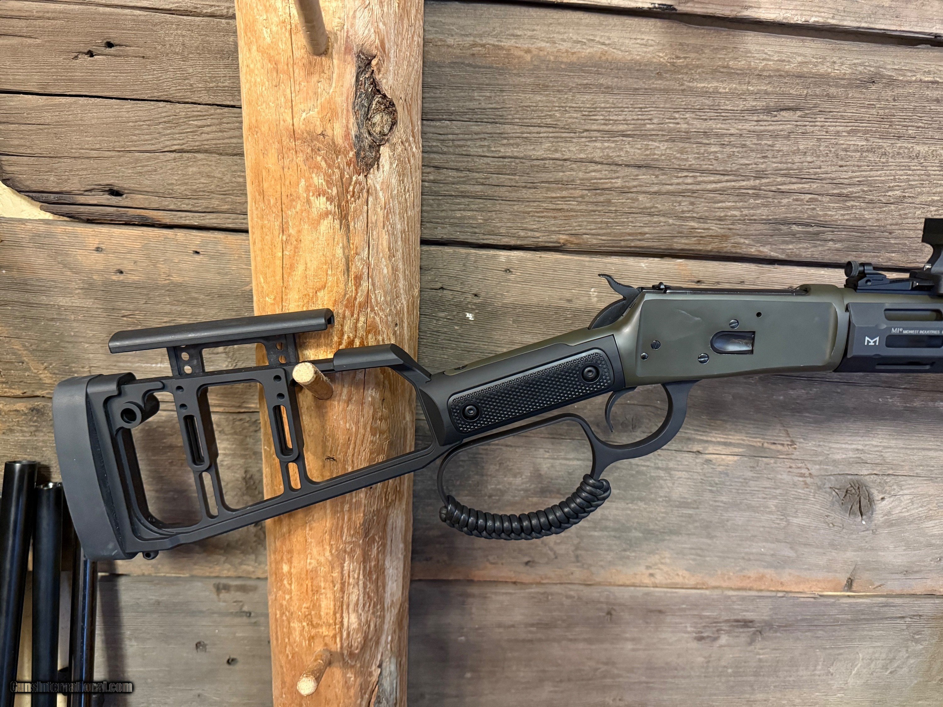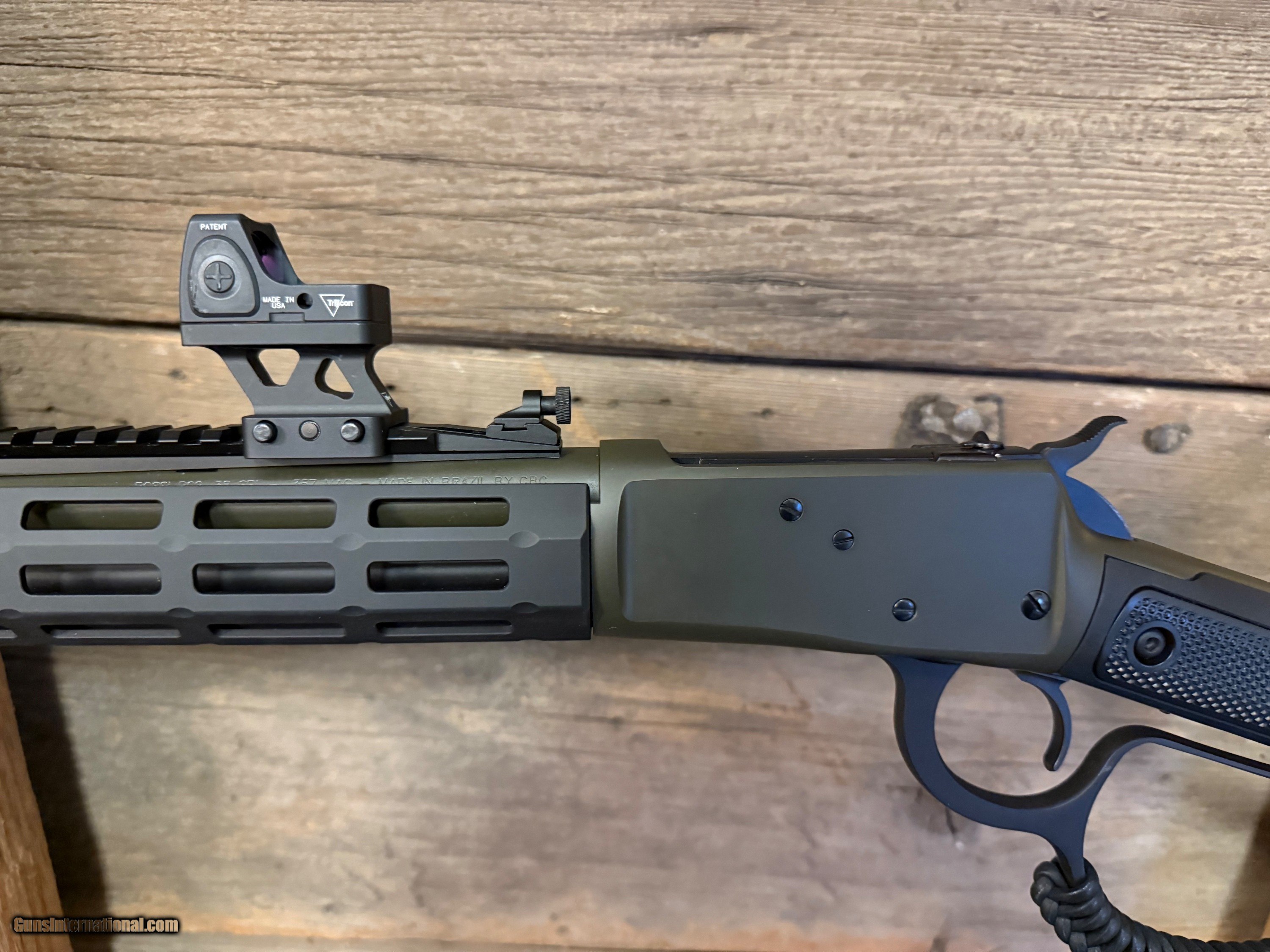 Description: Upgraded Rossi R92 lever action chambered in 357magnum with Midwest Industries stock and M-Lock rail. The rifle comes with a trijicon red dot and a Olight Odin with a pressure pad. The gun is in overall great shape and after talking with the owner of the rifle and inspecting it we can tell that is has been shot very little. If your looking for a tactical lever action rifle ready to go out of the box then this is a great choice. Rifle Caliber: .357 Magnum Manufacturer: Rossi Model: R92 Serial Number: 7cr189063u Barrel Length: 16 Condition: Like New Action: Lever Optic: Trijicon Price: $2,450.00 Contact Seller |