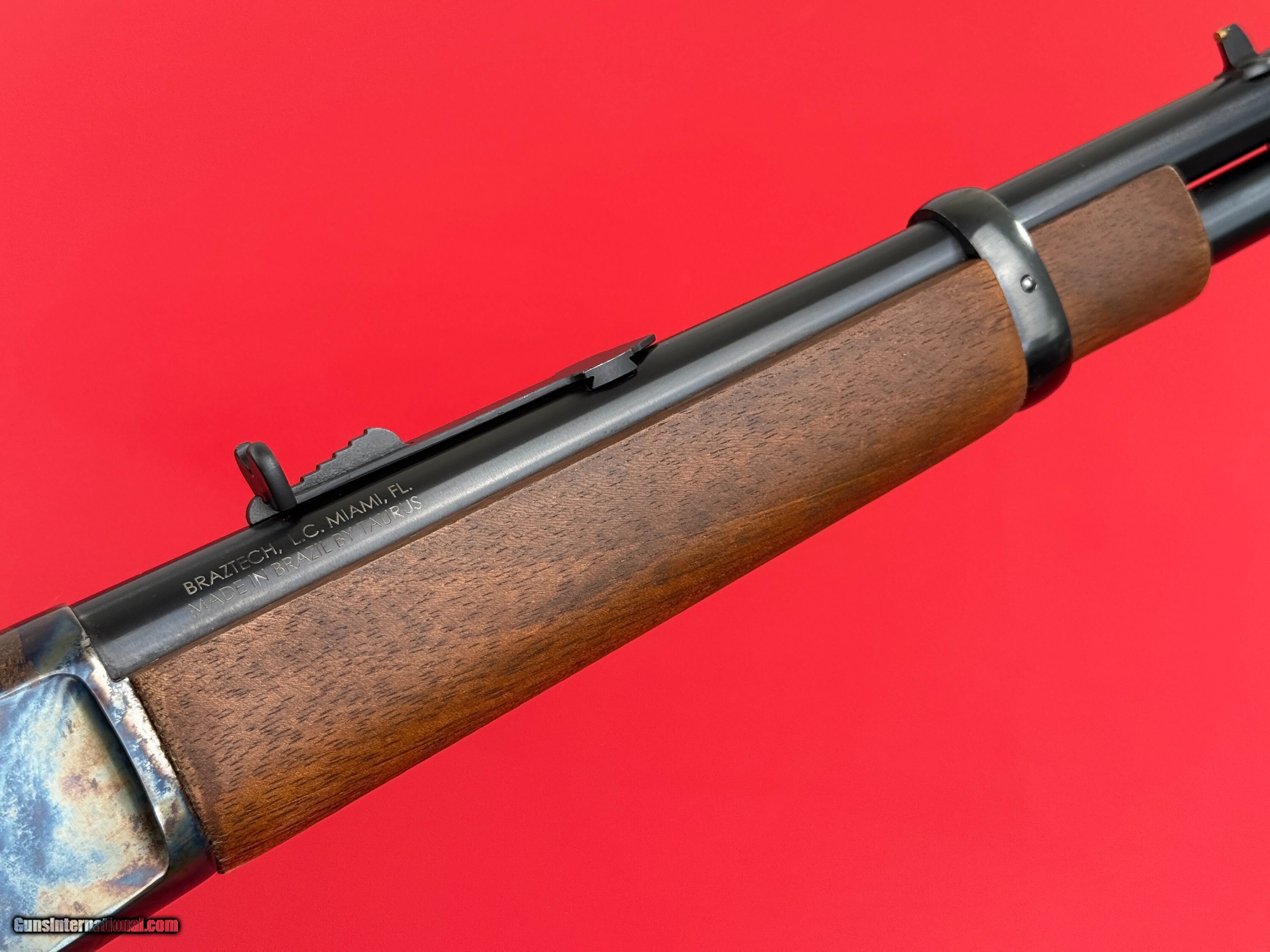 Description: Rossi R92RH Ranch Hand chambered in .45 Colt, paired with a custom Mernickle leather holster and 53" belt — a striking combination of old-west charm and modern craftsmanship. This lever-action firearm is a tribute to the legendary "Mare's Leg" design, featuring a compact 12" barrel, large loop lever, and blued finish over a rich hardwood stock. It’s both a functional shooter and a conversation piece, ideal for western enthusiasts, collectors, or cowboy action shooters. The firearm is in excellent condition — showing minimal wear, clean bore, tight action, and well-maintained wood and metal surfaces. The included custom Mernickle holster and 53" leather belt are also in superb condition, offering a secure, form-fitted carry with premium craftsmanship and attention to detail. FOR FULL PHOTO ALBUM ASK US FOR THE LINK! SPECS: