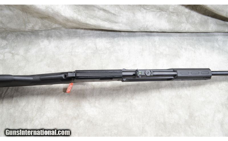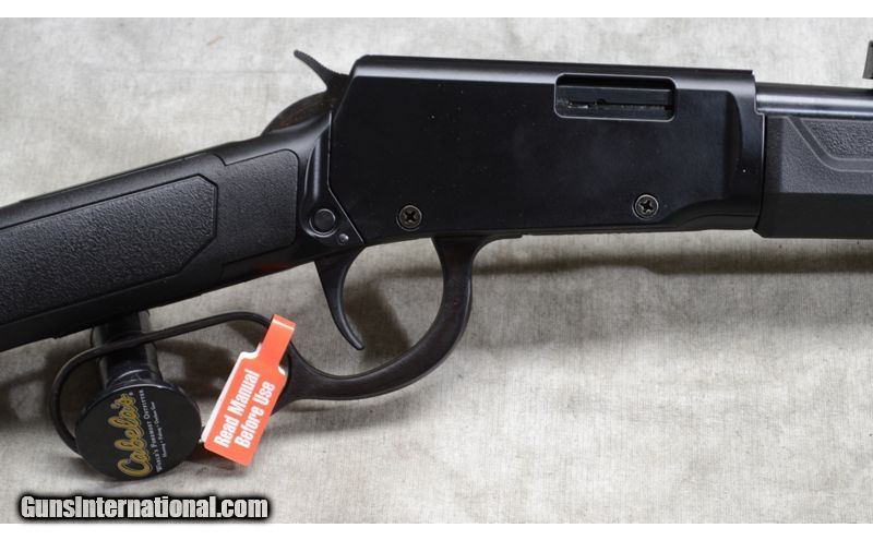 Description: This modern interpretation of the traditional lever action with black synthetic stock and forearm, modern fiberoptic sight, and ladder style rear sight. .22 Long Rifle SOLD Chambers: 10 Metal Condition: LNIB. Wood Condition: LNIB. Bore Condition: LNIB. Barrels: 18 Inch Triggers: Factory trigger. Stock Dimensions: 13-5/8 inch LOP. Fore End: Black synthetic heat shield. Butt Pad: Black synthetic plate. Weight: 5 lb. Sights: Hooded fiberoptic bead and ladder style rear sight. Grooved for mounting scope. Item Location: Rogers |