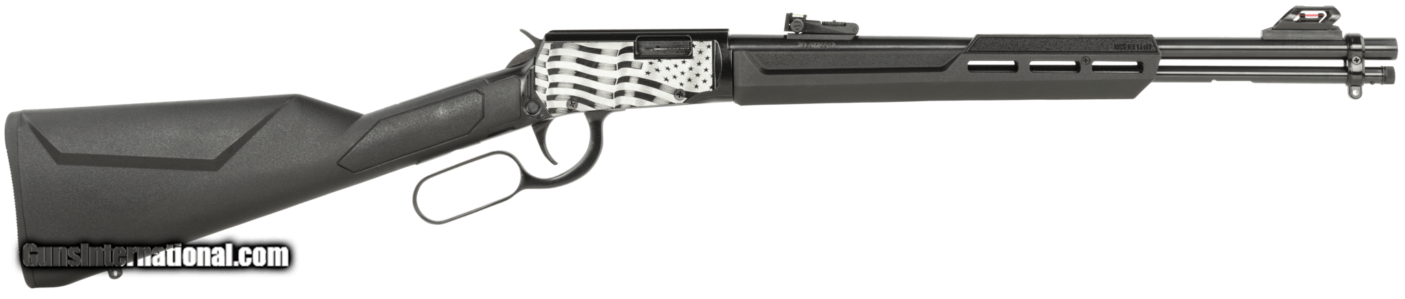 Description: Guns Listing ID: prod230151 The Rio Bravo rifle from Rossi features fiber optic sights, cross-bolt safety, and a polished black finish with a US Flag Engraved Rec. SOLD Manufacturer: ROSSI Model: RIO BRAVO Caliber Info: .22 LR Condition: new Barrels: 18 BARREL Finish: AMERICAN FLAG/BLACK |