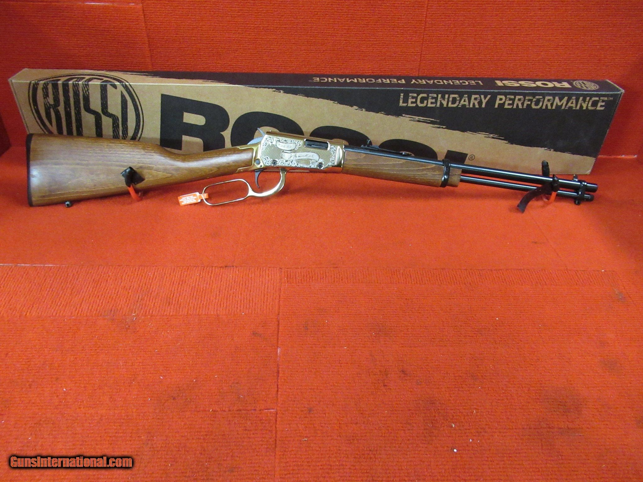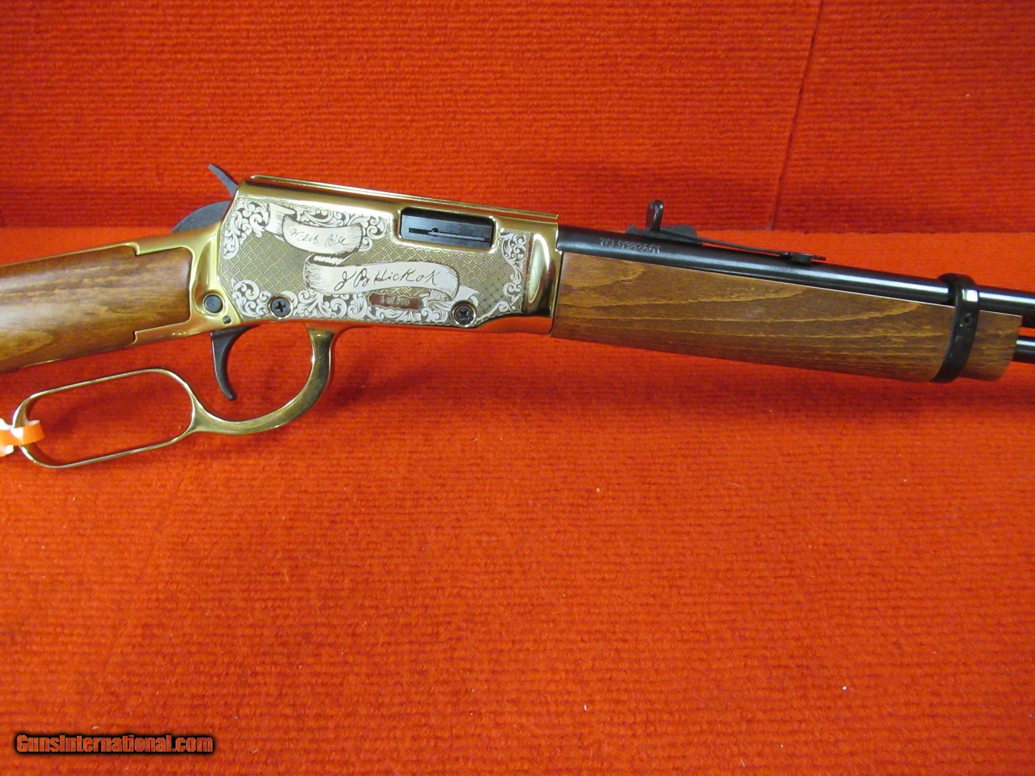 Description: Guns Listing ID: 532713 #739C Gun is in excellent condition. Gun comes unfired in its original box with paperwork. Front sight, rear adjustable sight. Brass receiver with Wild Bill Hickock scene with the dead man‚‚s hand. Only 500 of these guns were made. Tube fed magazine, great gun for plinking. Very nice gun. #& SOLD Manufacturer: ROSSI Model: Rio Bravo Wild Bill Hicock Edition Caliber Info: .22 LR Condition: Used - Non-Certified Barrels: 18 Action: LEVER ACTION |