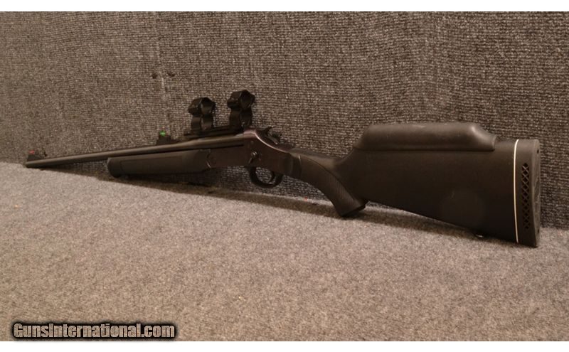 Description: Interchangeable 20 Ga barrel. and soft case .243 Winchester SOLD Chambers: Break action single shot. Metal Condition: Excellent no marks. Wood Condition: Excellent one slight mark. Barrels: 22 inch blued. Triggers: Single blued. Stock Dimensions: LOP: 14 inch. Fore End: Synthetic. Butt Pad: Black rubber Sights: Drilled & tapped with rings. Item Location: Thornton, CO |