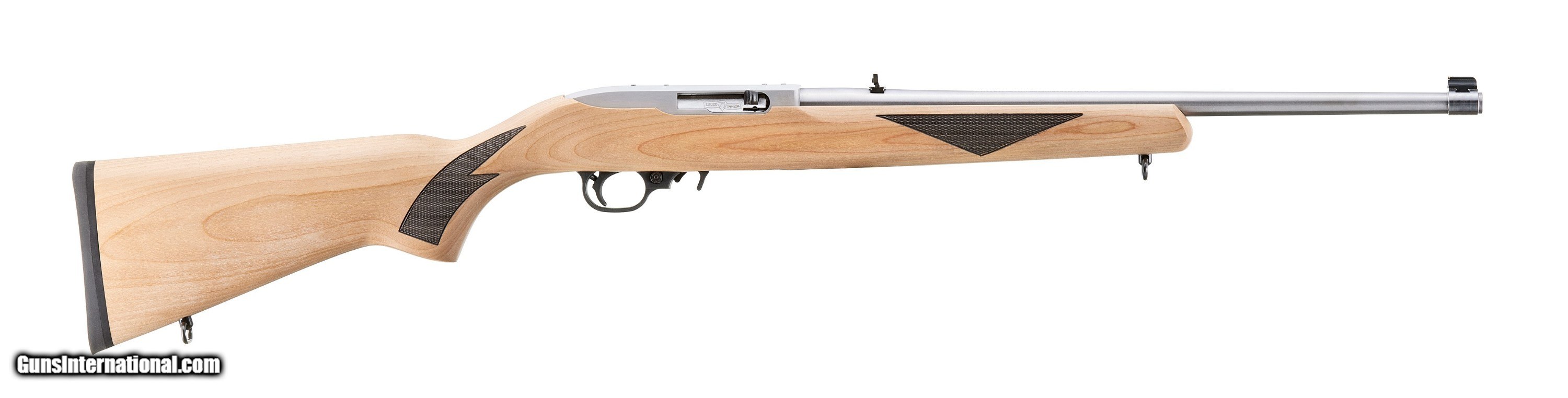 Description: NEW IN STOCK Ruger 10/22 Sporter, 75th Anniversary, Semi-Automatic Rifle, 22 LR, 18.5" Barrel, Clear Satin Finish, Alloy Steel, Natural Finish Hardwood Stock with Laser Checkering, Adjustable Rear & Gold Bead Front Sight, 10 Rounds, 1 Magazine 41275