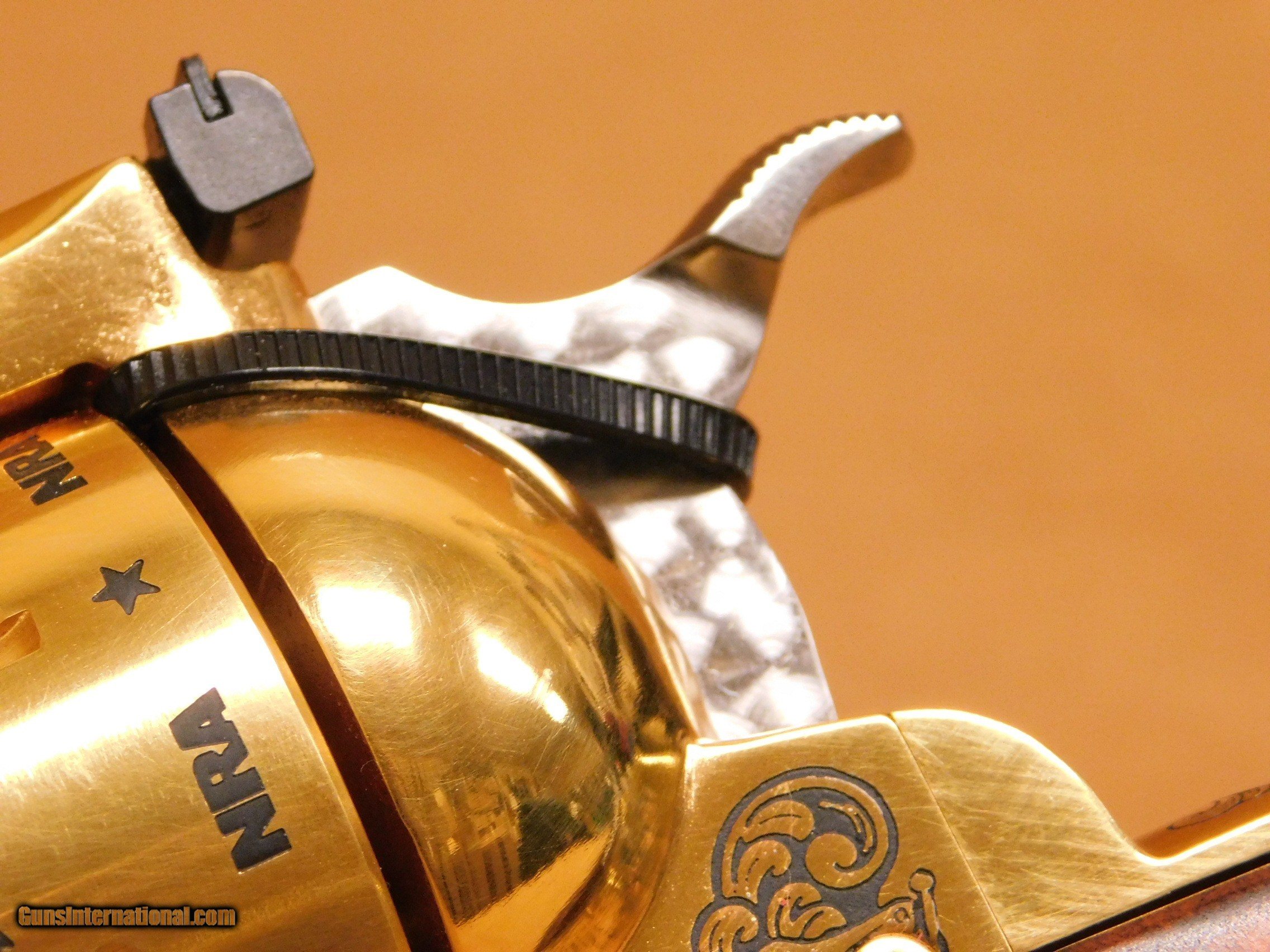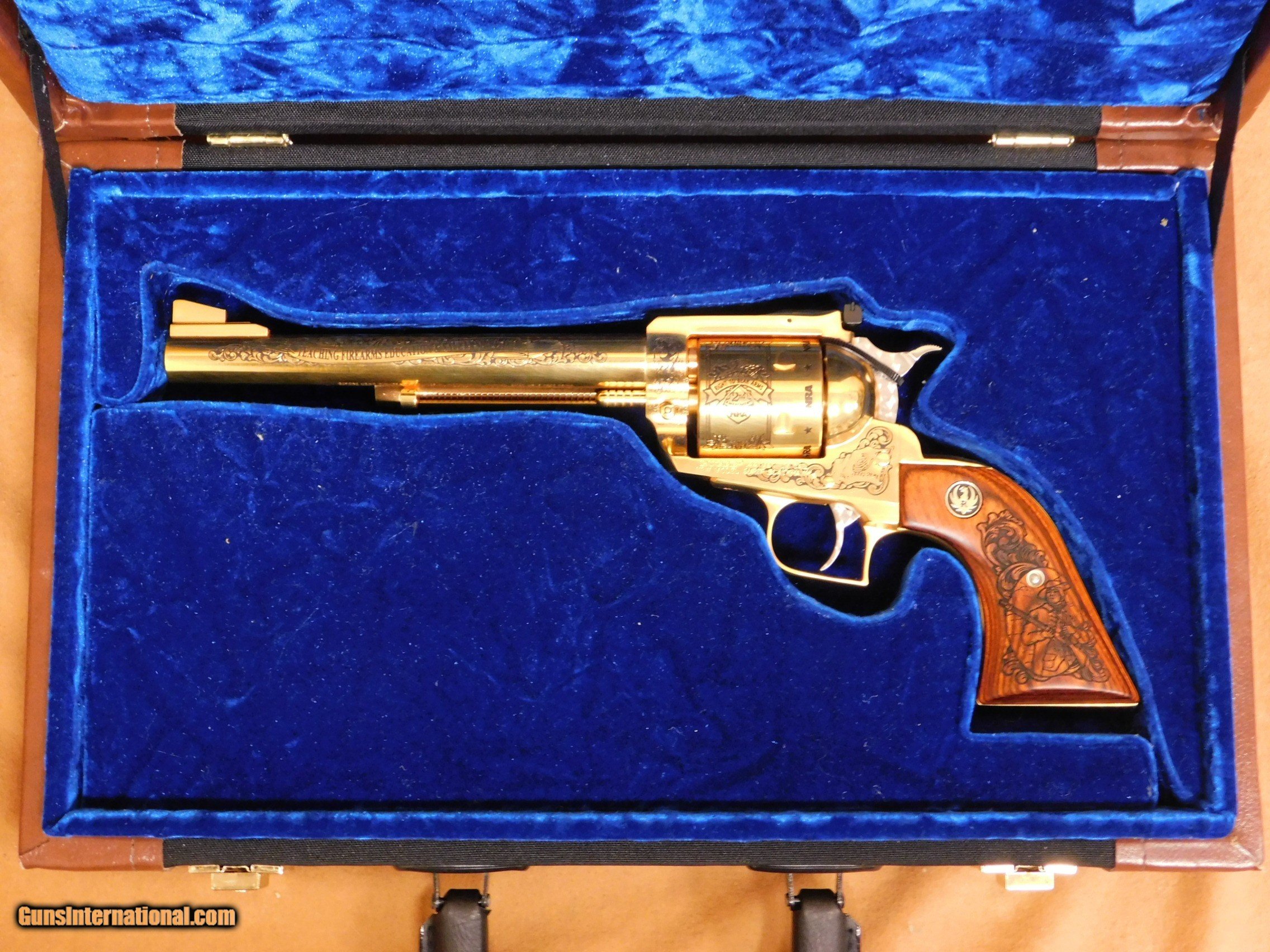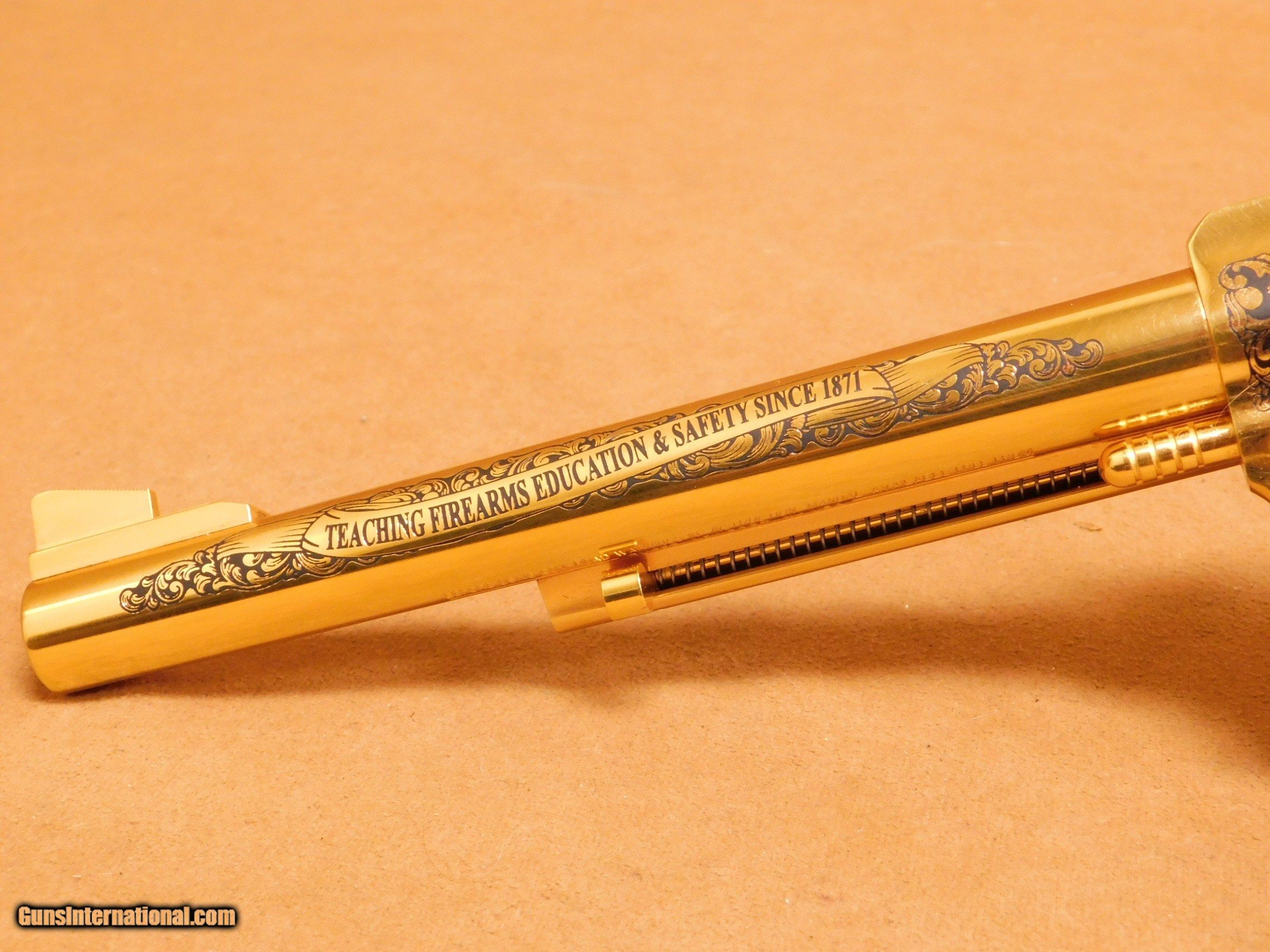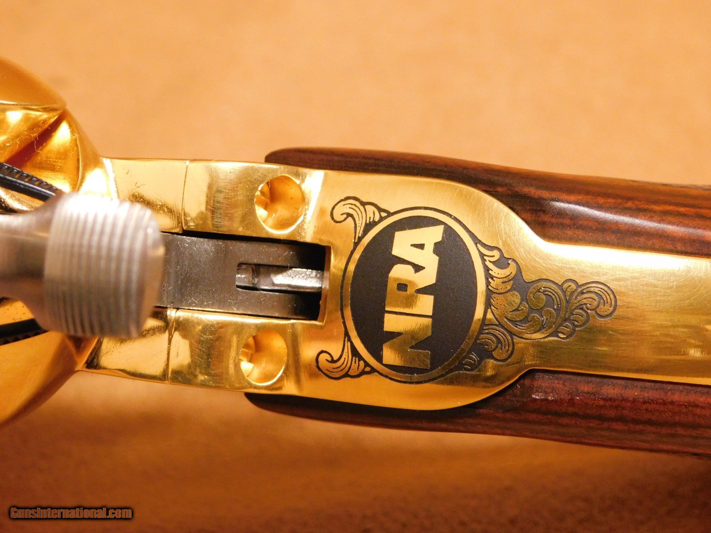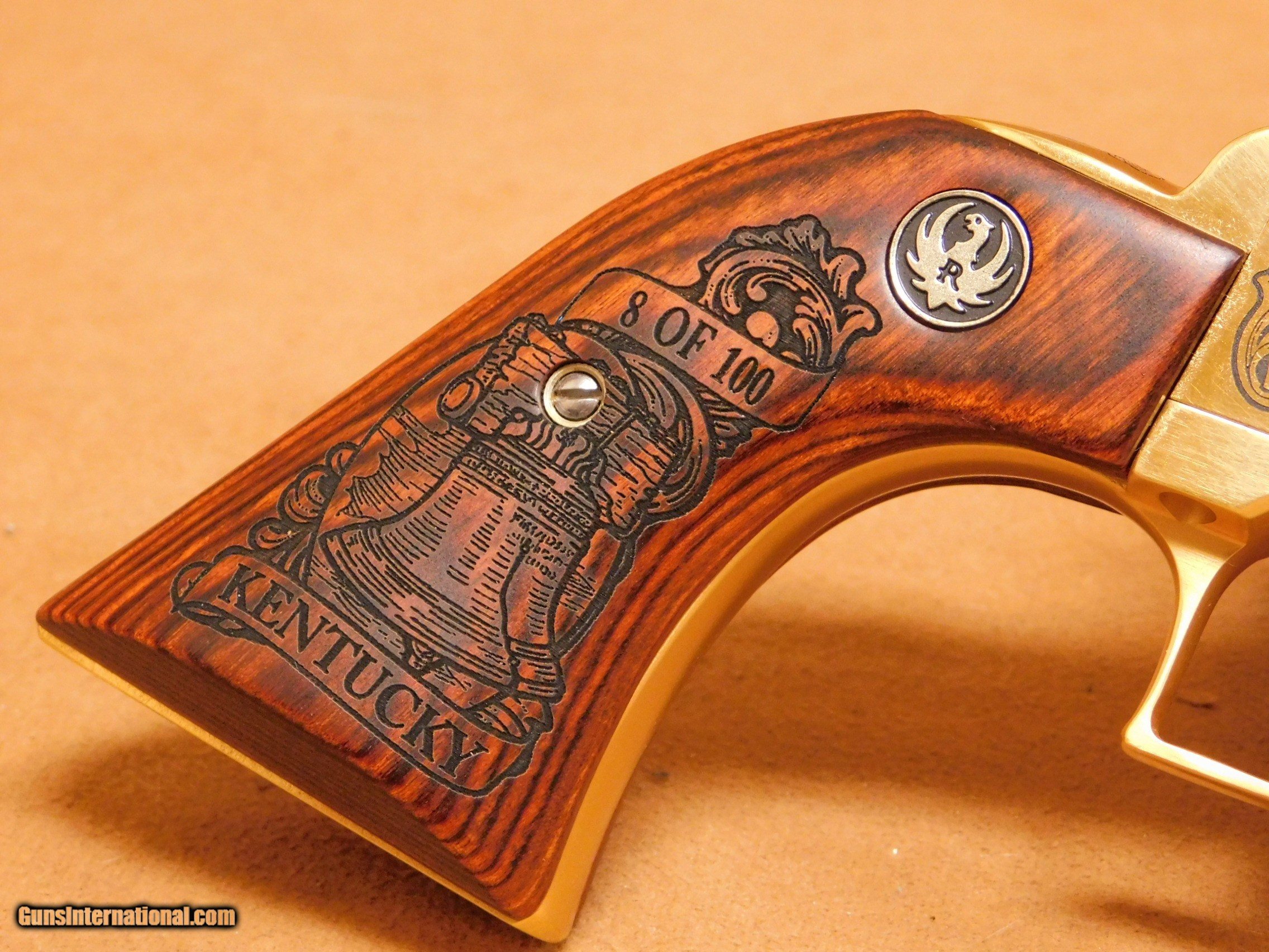 Description: This is a Ruger New Model Super Blackhawk NRA Commemorative. 100 of these were made for every state, and this is number 8 of 100 for Kentucky. This is a very nice looking revolver, featuring a beautiful full gold wash finish. It includes its NRA/2nd amendment display case. By the looks of this gun, it does not appear that its cylinder has been turned. This is a great collector piece for any NRA member or advocate for the 2nd amendment. All items are also available for sale in our brick & mortar store and are subject to prior sale. Think long, think wrong. Payment On firearms, we typically only accept credit cards or money orders/cashier's checks.
