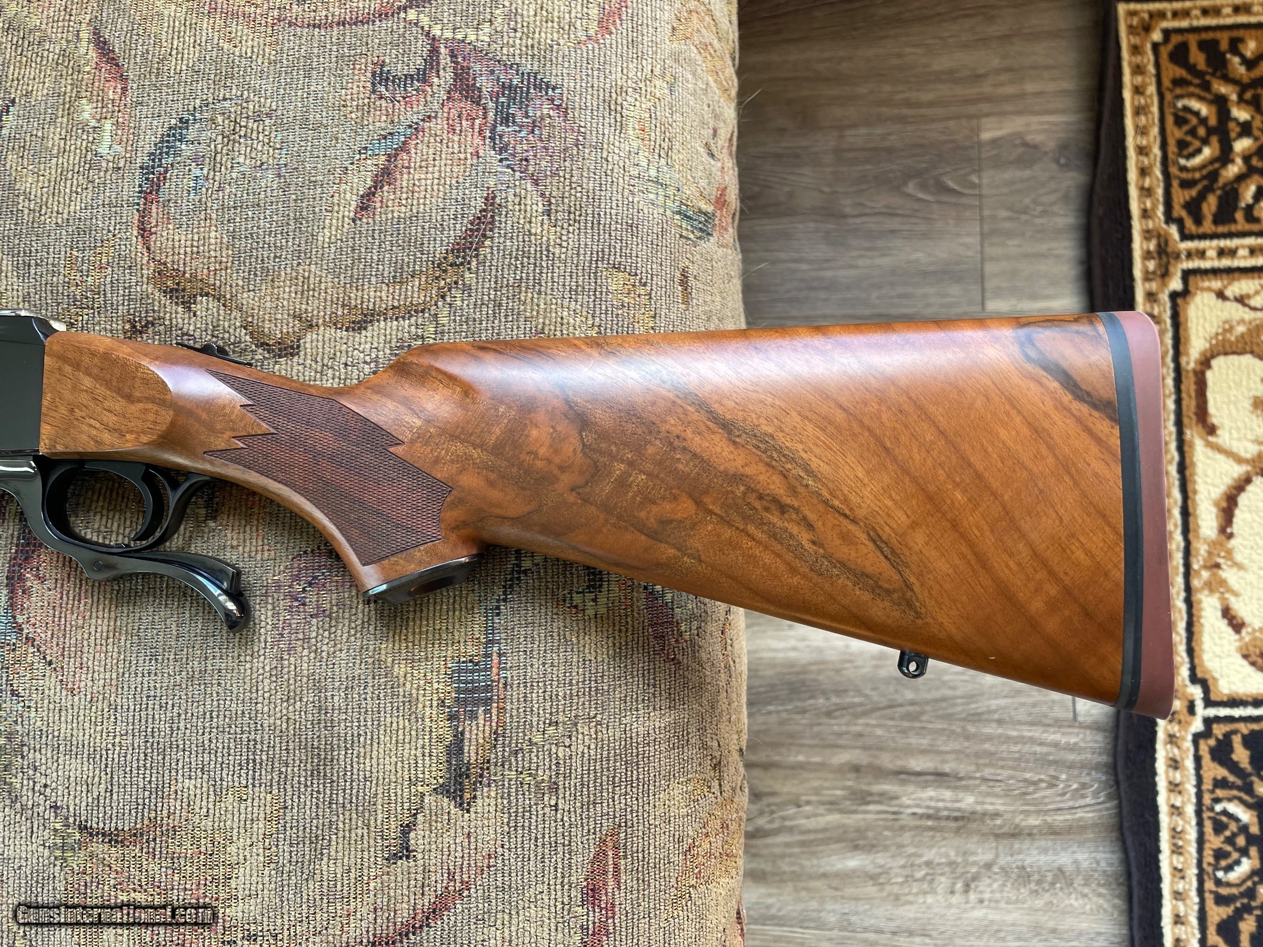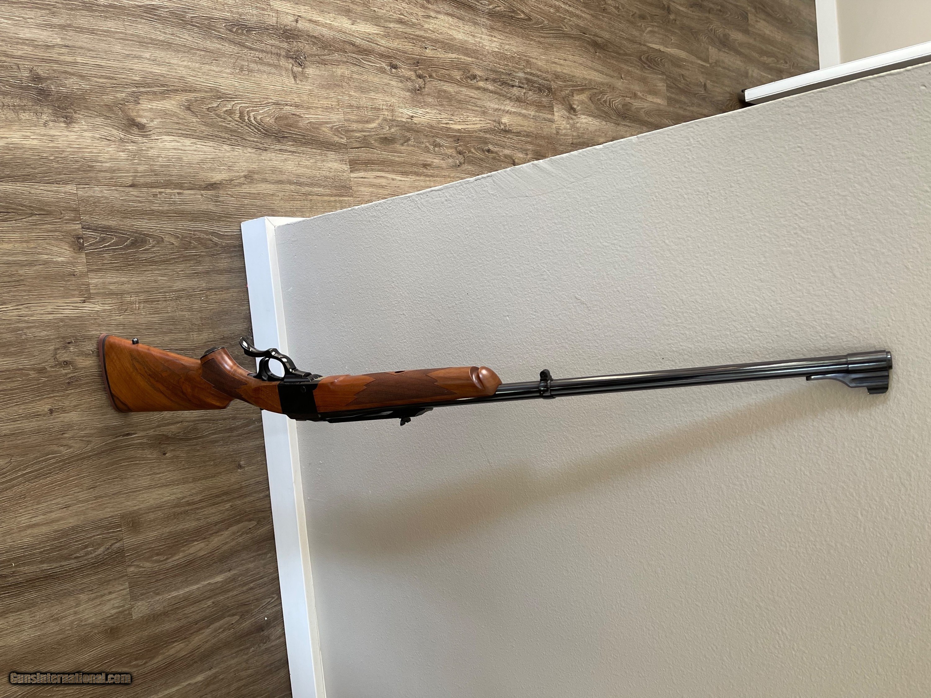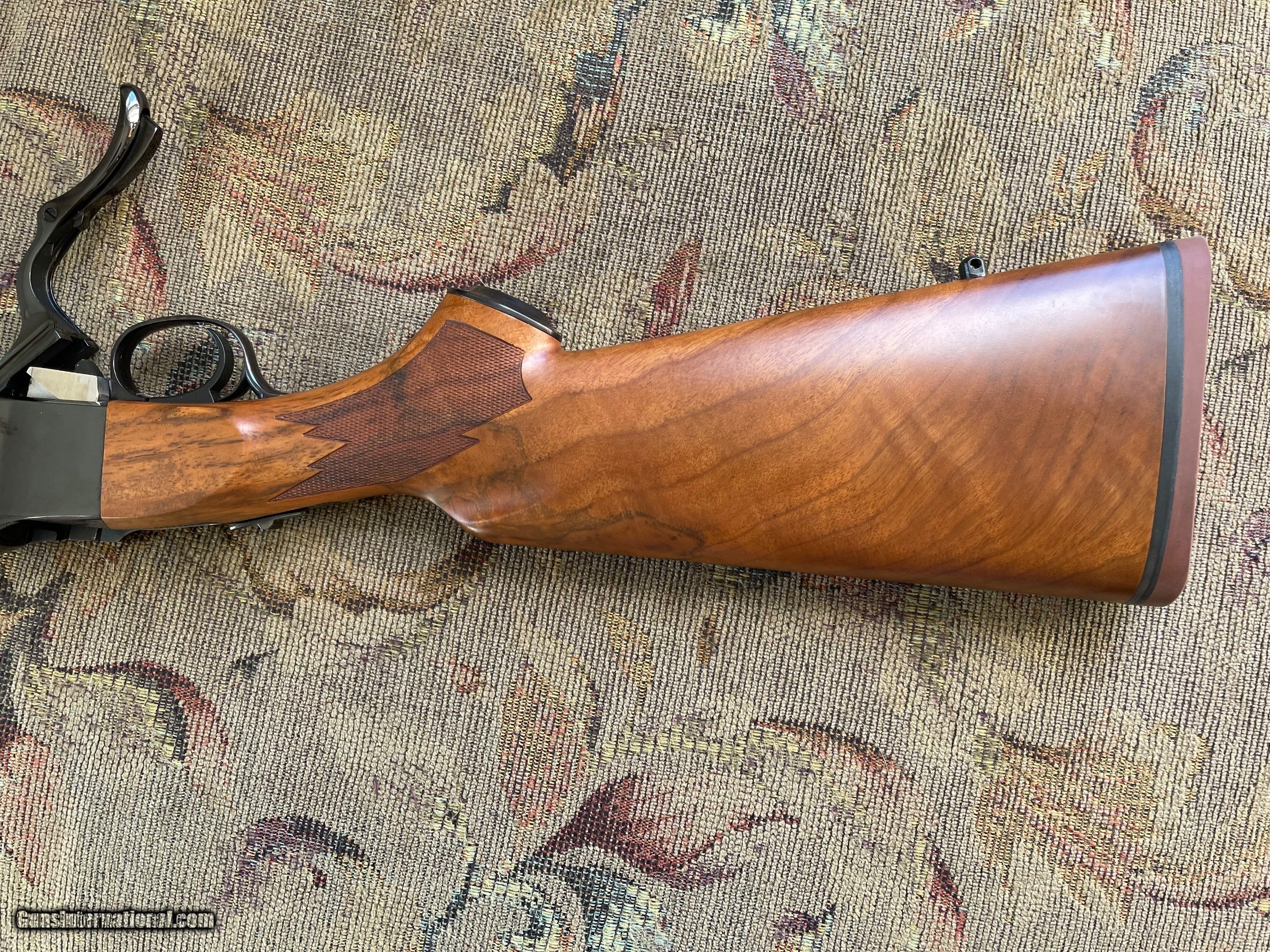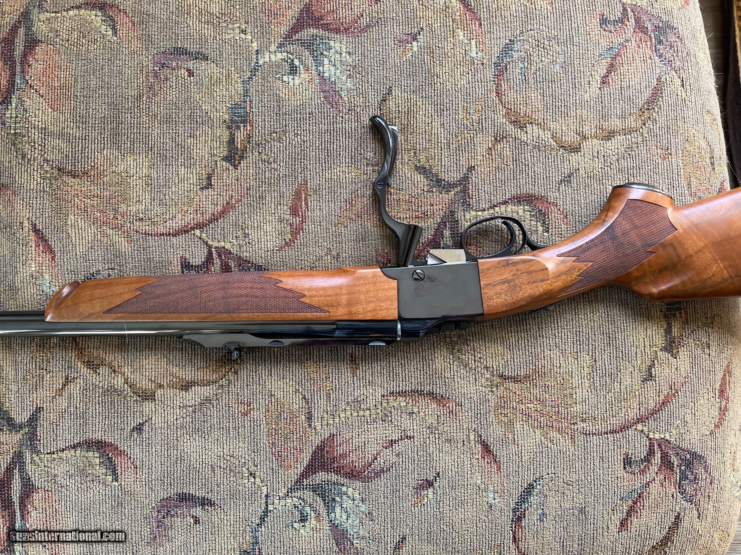 Description: Candelas commemorative Ruger #1, chambered in 300 H&H magnum. This is 1 of 500. Falling block action. Never fired. New in box condition. Here is your chance to build your collection or build an ultimate big game rifle. Comes in original factory box with Factory scope mounts. SOLD Rifle Caliber: .300 H&H Magnum Manufacturer: Ruger Model: Number 1 Chambers: 1 Condition: New Metal Condition: Heavy blued Wood Condition: Perfect Bore Condition: Unfired Action: Falling block |