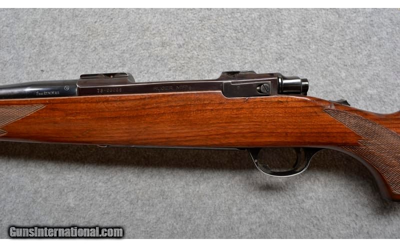 Description: Pre-owned Ruger M77 chambered in 7MM Remington Magnum, 24" barrel, no sights, includes scope rings, checkered American walnut stock with solid red recoil pad. Serial# 73-03066 7mm Remington Magnum SOLD Metal Condition: Fair condition with scratches and bluing wear Wood Condition: Fair condition with scratches and signs of use Bore Condition: Bright and shiny with good rifling Barrels: 24 Inches. Stock Dimensions: LOP 13 3/4 Butt Pad: Ruger red rubber pad Weight: 7.5 lbs. Item Location: Springfield, OR |