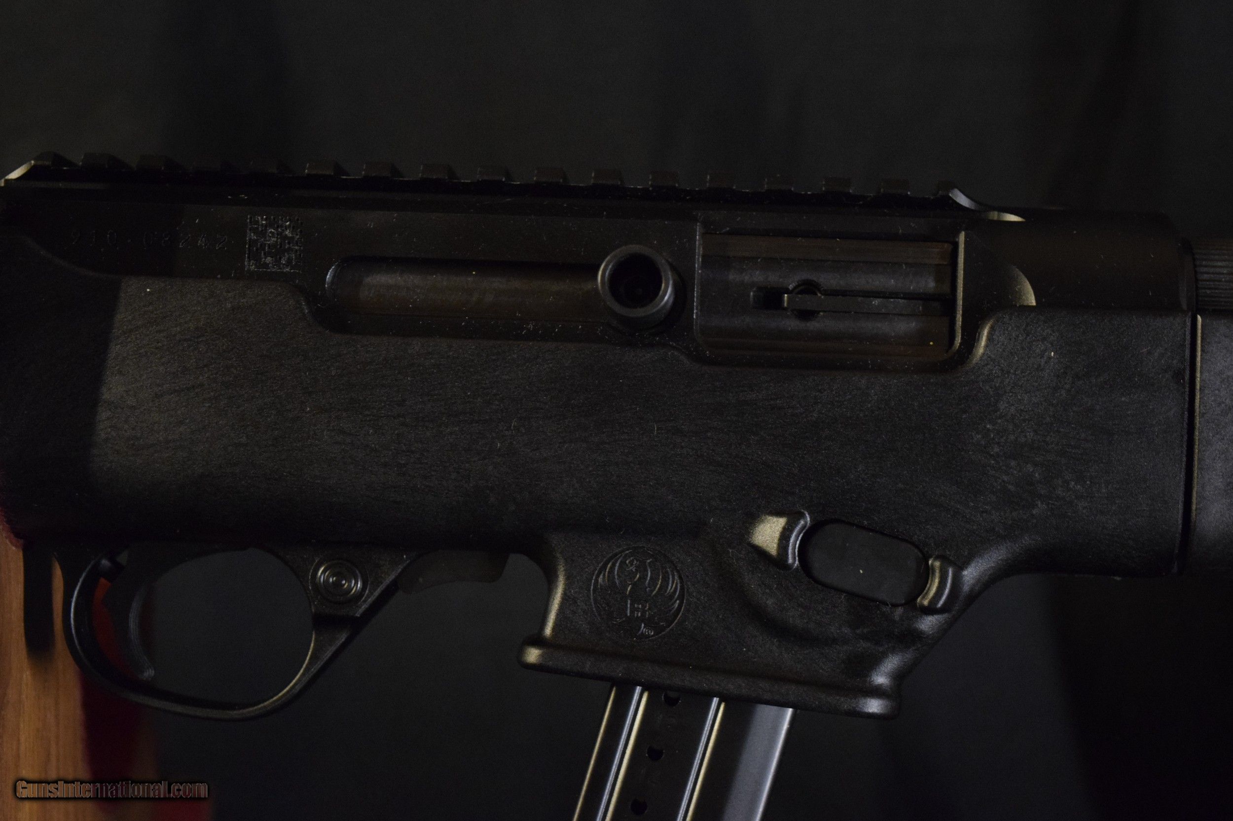 Description: Interchangeable magazine wells for use of common Ruger® and Glock® magazines. Ships with SR-Series™/Security-9® pistol magazine well installed and an additional magazine well accepting Glock® magazines is included*. Ruger American® Pistol magazine wells are available at ShopRuger. Easy takedown enables quick separation of the barrel/forend assembly from the action for ease of transportation and storage. Takedown is as simple as locking the bolt back and verifying that the rifle is unloaded, pushing a recessed lever, twisting the subassemblies and pulling them apart. Dead blow action features a custom tungsten dead blow weight that shortens bolt travel and reduces felt recoil and muzzle rise. Bolt is machined from heat treated, chrome-moly steel to ensure strength, structural integrity and durability. Reversible magazine release and reversible charging handle to support left- or right-handed use or one-handed control manipulation while maintaining a proper firing grip*. Cold hammer-forged, chrome-moly steel barrel with ultra-precise rifling provides exceptional accuracy and longevity. The heavy contour barrel provides consistent accuracy, while barrel fluting sheds unnecessary weight and allows for quick handling. Threaded barrel with included thread protector allows for use of standard muzzle accessories. Accurate sighting system with adjustable ghost ring rear aperture sight and non-glare, protected blade front sight. Soft rubber buttpad with spacers allows the rifle to be properly sized for different shooters or varying levels of outerwear or defensive gear (three, 1/2" spacers included). Durable, glass-filled nylon synthetic buttstock features a proprietary texture for enhanced control and an integral sling mount for rapid sling attachment . Light, crisp trigger pull with minimal overtravel and positive reset utilizing proven 10/22® trigger components. CNC-machined from an aerospace-grade 7075-T6 aluminum billet, the receiver includes an integrated Picatinny-style† rail and is Type III hard-coat anodized for maximum durability. Also includes: one, SR-Series™ or Security-9® pistol magazine and hex wrenches for rear sight adjustment, buttpad spacer adjustment, and charging handle removal. This item comes with one lock, one magazine, and a box. Overall condition is excellent with little to no wear. Pre-Owned - Ruger PC9 Carbine Take Down Semi-Auto 9mm 16.12" Rifle