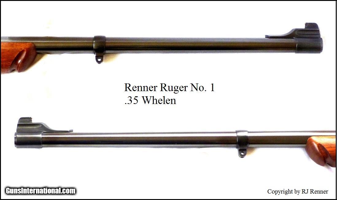 Description: .35 WHELEN CUSTOM RUGER NO.1 This custom Ruger No.1 has been rebarreled for the classic .35 Whelen cartridge and features a 24-inch Douglas barrel of the “S” configuration for perfect weight and balance. It features a quicker-than-standard twist of 1:12 which will accommodate heavy 300-grain bullets which put this cartridge in the same class as the justly-famous African 9.3x62 and 9.3x64 cartridges. It will also shoot lightweight bullets equally well. In addition to its custom barrel, this Number One also features beautiful casehardening of the receiver, lever, and grip cap. The handsome stocks are original to the rifle and did not require replacement to create this spectacular custom rifle. This also keeps the cost for a Trophy Ruger No.1 at a reasonable price. Custom wood for a Number One will generally add an additional $4000 to the price of the build. This custom Ruger No.1 is a handsome Trophy Rifle that is capable of handling any game in North America with ease, and with heavier bullets, most anything in Africa as well. Additional detail photos are available to serious parties. Price does not include shipping or any other costs incurred by buyer to complete this transaction. SOLD |