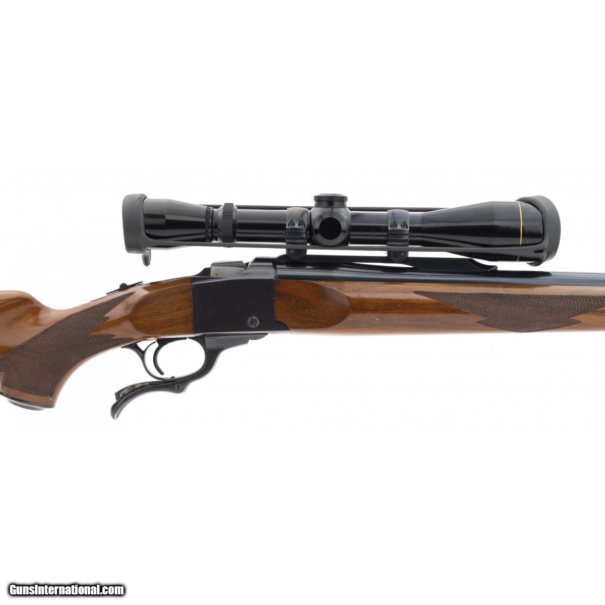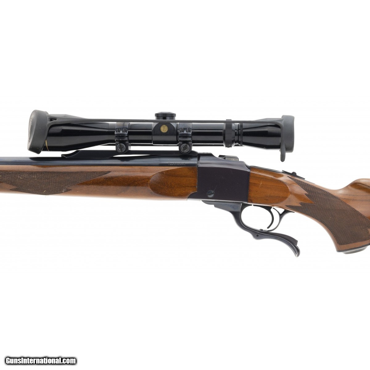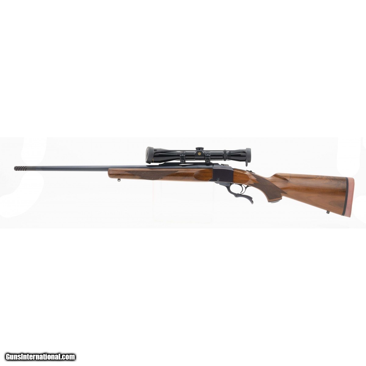 Single shot sporter with a Leupold 4x12 scope. Has a custom muzzle brake. Very good condition with light wear.