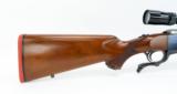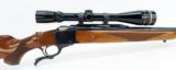 Description: Ruger No.1 .22-250 caliber rifle. Single shot rifle with Mag-Na-Ported barrel and Leupold 6.5x20 scope in excellent condition.