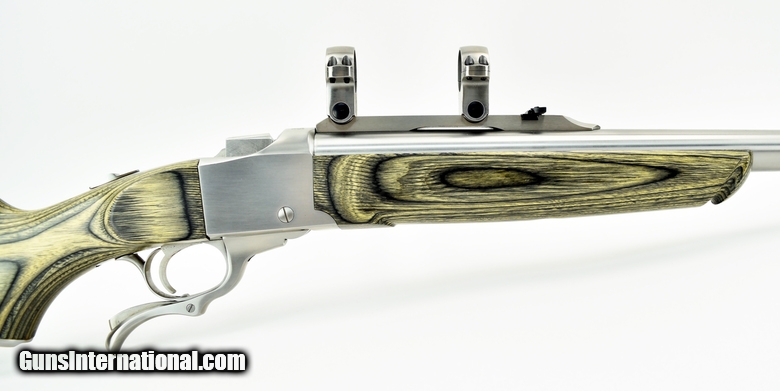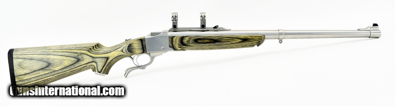 Ruger No.1 458 LOTT caliber rifle. Stainless steel tropical rifle with laminated stock with scope rings in excellent condition.