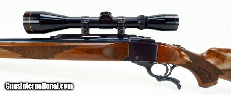 Description: Ruger No.1 7mm Rem Magnum caliber rifle. Single shot sporter with extra fancy feathered walnut. The barrel has been Mag-Na-Ported. Excellent condition with Leupold 3x9 scope.