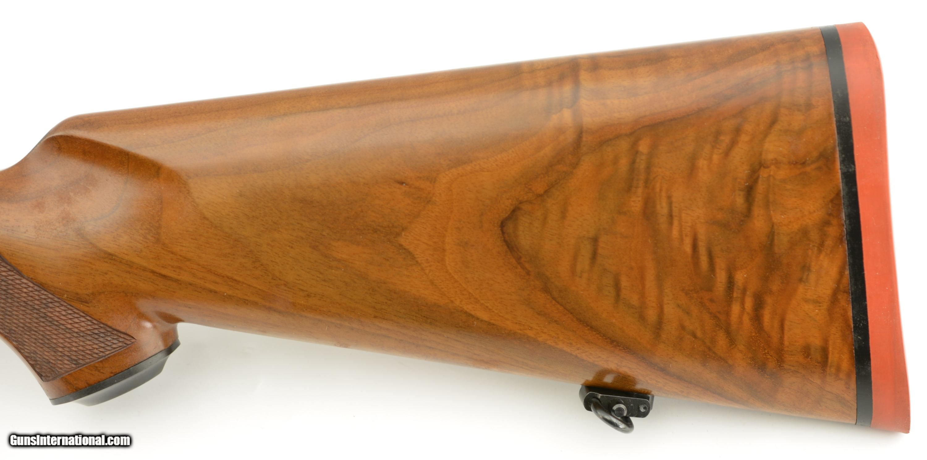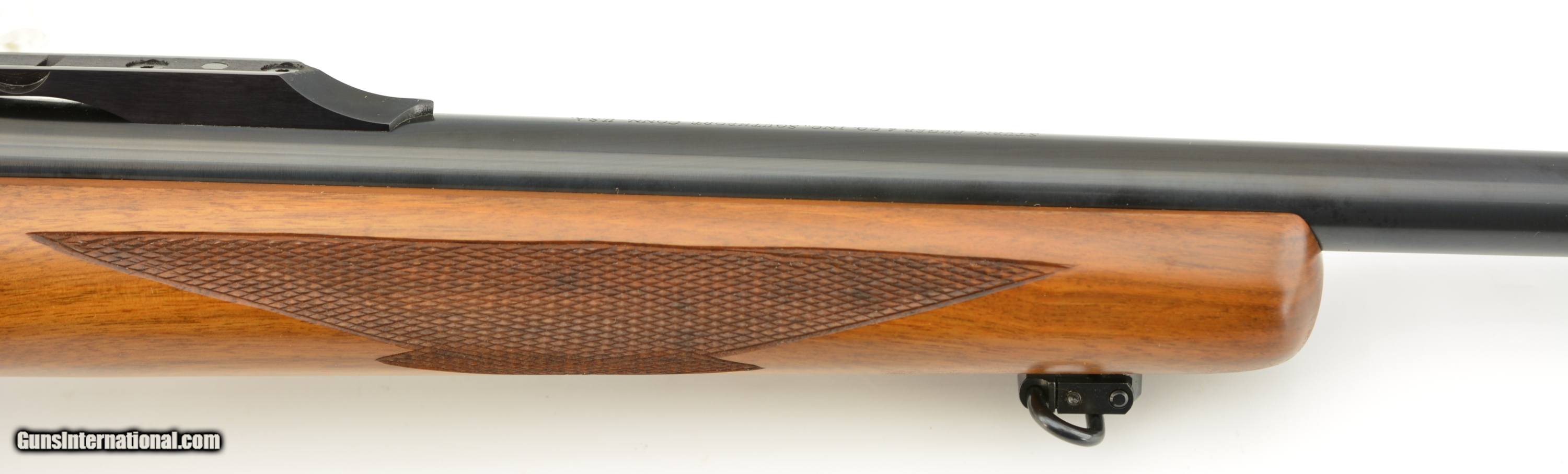 Description: Serial #130-13857, 6mm Rem., 26" barrel with an excellent, bright bore. This is a 1975-made rifle that retains practically all of the original blue finish on the metal. The rifle is not equipped with iron sights, but does have a quarter rib for installing Ruger scope rings. The checkered beavertail forend, and pistol-grip stock have virtually no wear or handling marks, and the latter is outfitted with a red Ruger recoil pad. Original QD sling swivels are also installed. The rifle is housed in the original, numbered Ruger cardboard shipping box with the original scope rings and manual. Also included is a 2022-dated Ruger factory letter that lists a shipping date of February, 1975 to Camfour Inc. of Westfield, MA. This is a practically new-in-box, No. 1-B rifle, and is chambered in a rare and desirable caliber. FFL SOLD Manufacturer: Ruger Model: No. 1 Serial Number: 130-13857 Caliber Info: 6mm Gauge Info: 6mm |