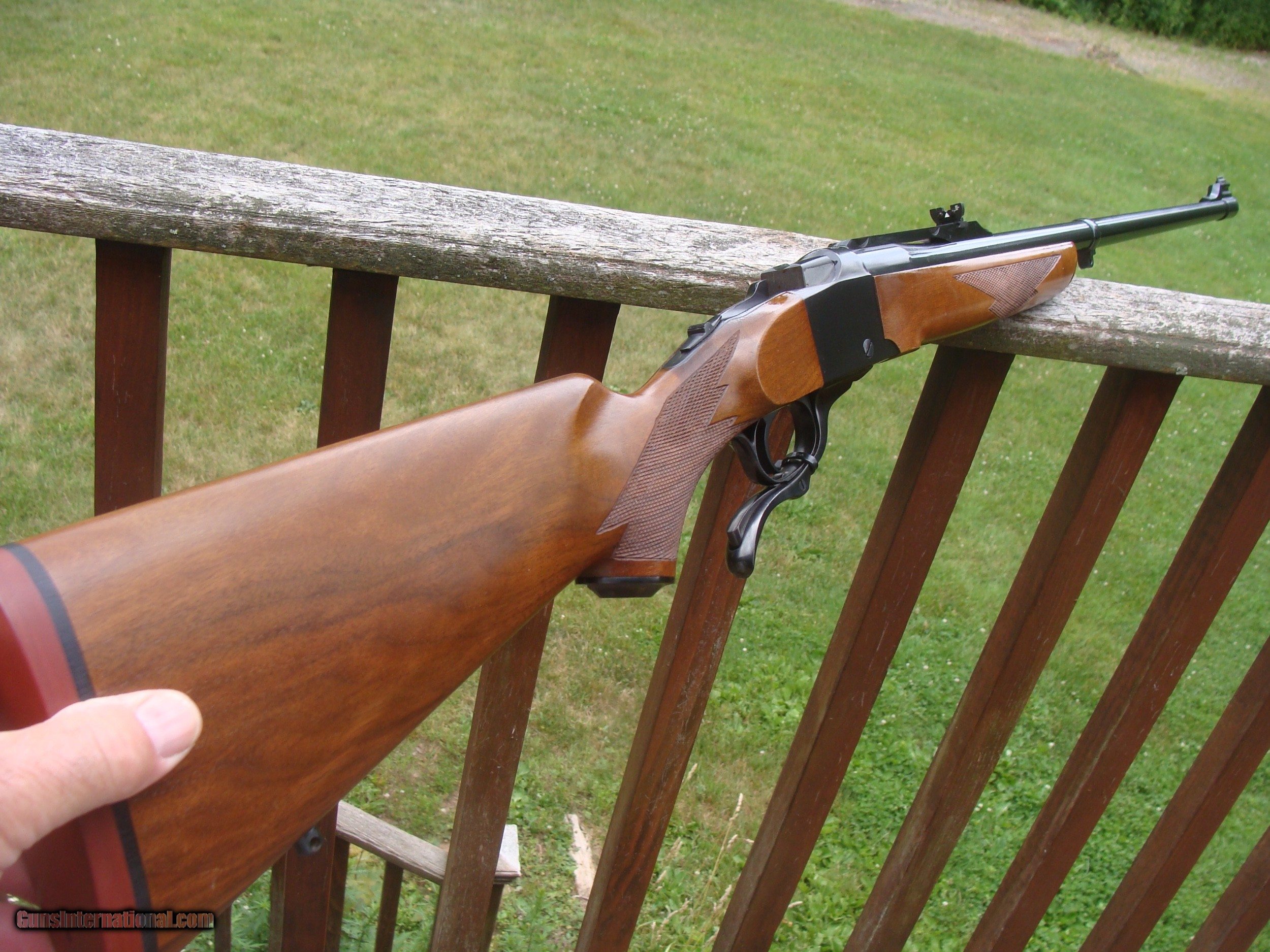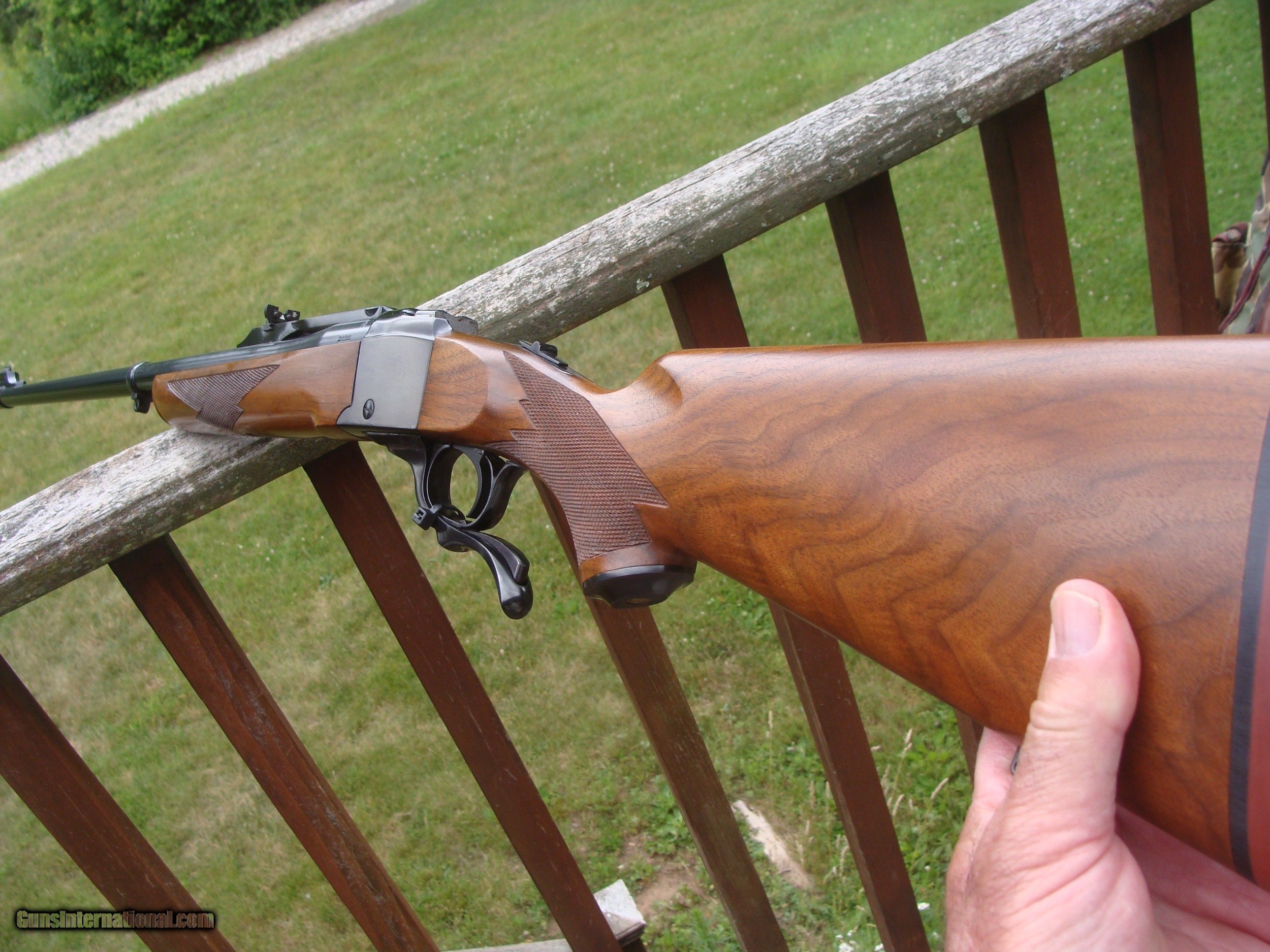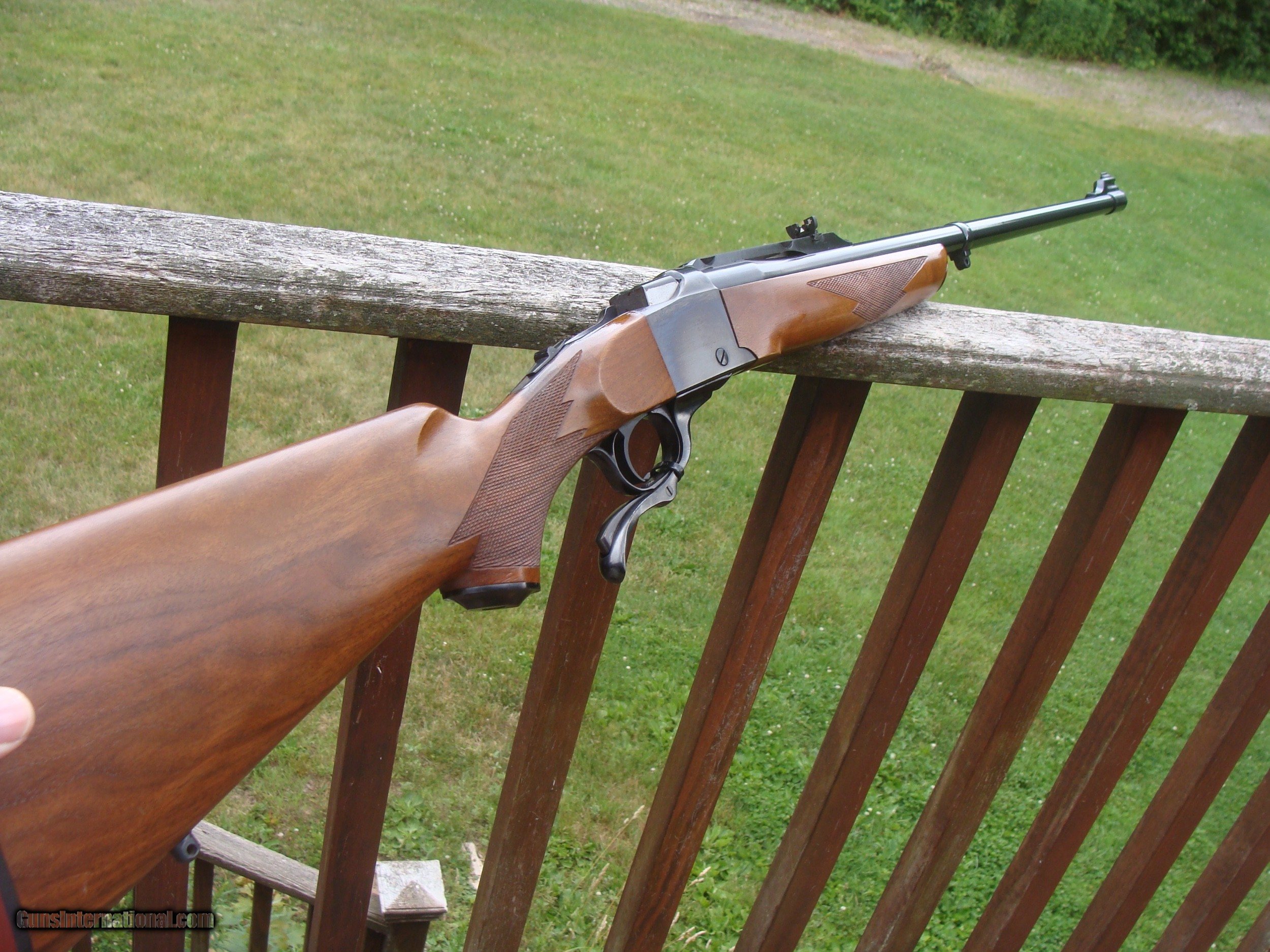 Description: Save for the most insignificant mark on the butt stock near the Ruger Red pad left side we do not see a single handling or use mark on this fine rifle. Med to heavy varmint weight barrel with factory sights. Mild report similar to 22 Hornet make this a suitable varmint round for more populated areas or just a great quality gun to shoot paper. Handsome walnut stock set with perfect sharp and clean real cut checkering. Shipping is $ 55.00. PLEASE READ EVERYTHING BELOW IN BOLD: IF IT DOES NOT SAY NEXT TO THE PRICE..."SALE PENDING OR UNDER DEPOSIT"...IT IS AVAILABLE. WE DO NOT REPLY TO INQUIRIES THAT SAY "INTERESTED IN THIS GUN" OR "IS IT AVAILABLE" IF YOU WOULD LIKE TO BUY THIS OR ANY OF OUR GUNS WE SUGGEST YOU PHONE US; WE ARE OFTEN AVAIALABLE LONG HOURS. IF YOU ARE INTERSTED IN A GUN THAT IS UNDER DEPOSIT AND WOULD LIKE TO BE NOTIFIED IF A SIMILAR GUN COMES IN DROP US A LINE AND WE WILL MAKE EFFORTS TO CONTACT YOU WHEN ONE DOES COME IN. WE HAVE OVER 2000 SALES ON ALL SITES WITH AN A+ RATING ON ALL WE ALSO KEEP AN INVENTORY OF OLDER PERIOD CORRECT SCOPES; CALL WITH NEEDS WE MOSTLY PICK VERY CLEAN AND LIGHLTY USED GUNS. WE ARE HAPPY TO TAKE CONSIGNMENT GUNS AND COLLECTIONS OR WILL BUY YOURS OUTRIGHT. WE SOMETIMES ARE EMPLOYED FOR ESTATE PURPOSES AND VALUATIONS. CT RESIDENTS MUST CONTACT US TO UNDERSTAND OUR IN STATE TRANSFER POLICIES. PAYMENT USPS MONEY ORDER ONLY AT THIS TIME. ( WE CAN TAKE A DEPOSIT WITH A CARD BUT THE GUN MUST BE PAID WITH A USPS MONEY ORDER) IT IS THE BUYERS RESPONSIBILITY TO GET US A COPY OF YOUR RECEIVING FFL'S LIC AND A COPY OF YOUR PHOTO ID BEFORE THE GUN SHIPS YOU MUST CALL YOUR FFL.WE DO NOT CALL FOR YOU. LAYAWAY PURCHASES NOT COMPLETED OR ANY RETURNED ITEM UNLESS NOT AS DESCRIBED OR DAMAGED ARE SUBJECT TO A 10% RELISTING/RESTOCKING FEE AND MUST BE RETURNED WITH NO NEW MARKS OR SCRATCHES, SENT BACK INSURED, PRIORITY SIGNATURE REQUIRED. ALL INFORMATION CONTAINED HEREIN IS BELIEVED TO BE ACCURATE BUT IS NOT GUARANTEED. WITH ANY OLDER OR USED GUN IT SHOULD BE EXAMINED BY A GUNSMITH OR COMPETENT EXPERT PRIOR TO USE SOLD |