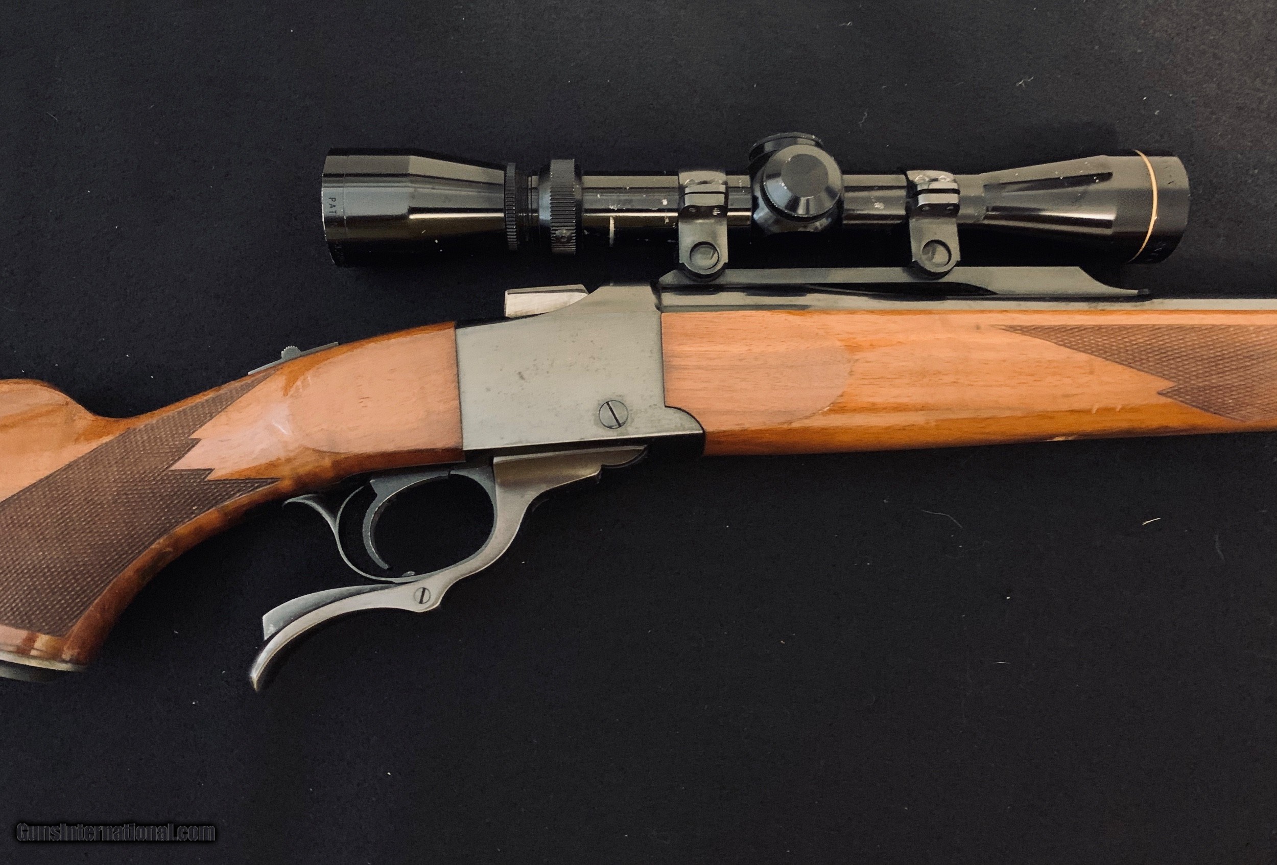 Description: This is a Ruger #1 in .22-250 in very good to excellent condition. The rifle has a Leopold 3-9x scope but not included at the new lowered price. very accurate rifle with less that 500 shots through barrel. I am original owner. SOLD SOLD Manufacturer: Ruger Model: Number 1 Barrel Length: 24 Caliber Info: .22-250 Condition: Very good to wxcellent Metal Condition: Very good Wood Condition: Very good to excellent Bore Condition: Bright Action: Single shot Triggers: Single Butt Pad: Red Rubber original pad Weight: 7.5 Sights: None included rings and bases only Item Location: Miami |