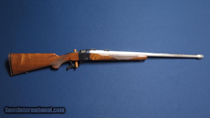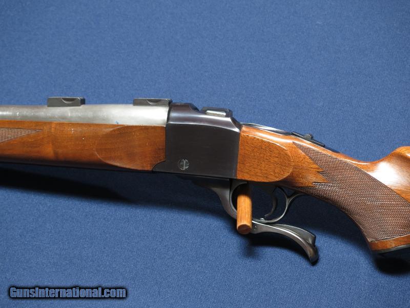 Description: Ruger #1 B 22-250. 27" stainless Hart barrel with muzzle brake. 96-97%. Excellent bore. SOLD |